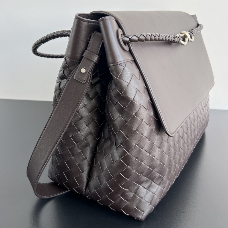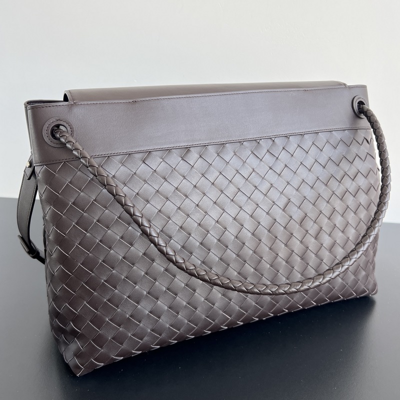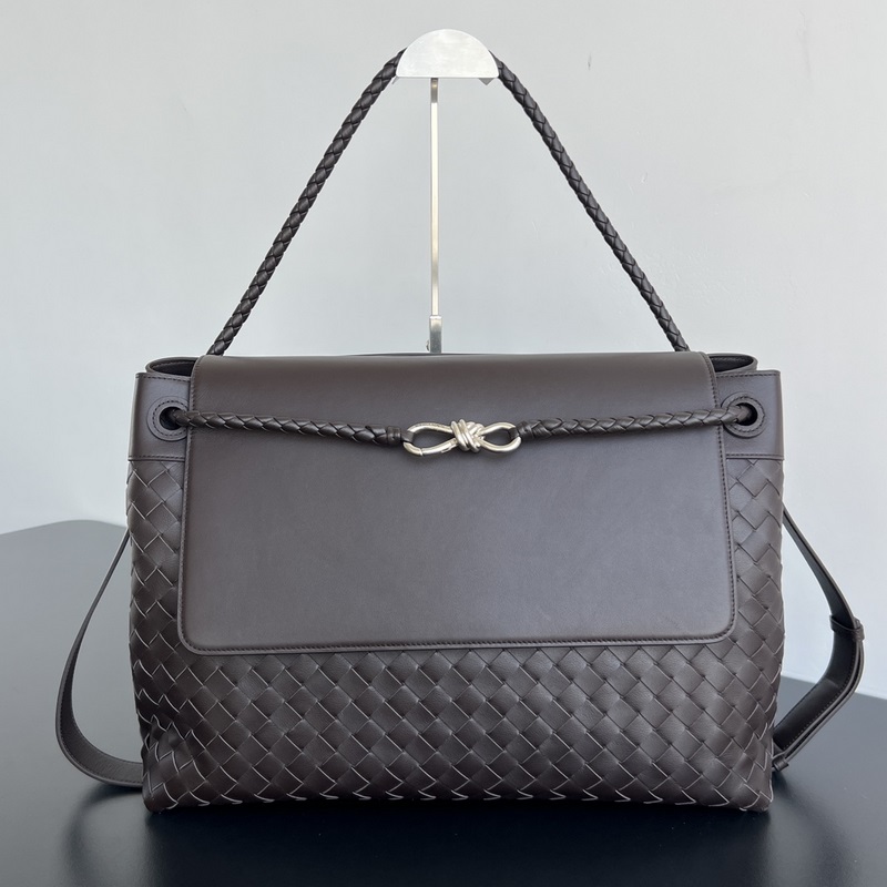 #BV 신상 남성용 Andiamo 손잡이 단숏 크로스백으로 사용 가능한 805969는 패션과 실용성을 겸비한 남성용 가방입니다. Intrecciato 직조 디자인의 상징적인 요소와 광택 있는 가죽의 조합이 독특한 시크한 스타일을 연출합니다. 소가죽의 미묘한 광택과 자연스러운 텍스처가 고급스러운 패션감을 더하며 플랩 디자인과 Knot 매듭 스트랩 단단한 전체 가죽 스트랩이 조합되어 개인적인 느낌과 다양한 착용 방법을 제공합니다. 크기에 관계없이 노트북을 수납할 수 있으며 일상 출퇴근 비즈니스 출장 또는 여행 등 다양한 상황에서 편리하게 사용할 수 있습니다. 크기: 43x32x20