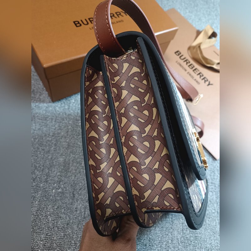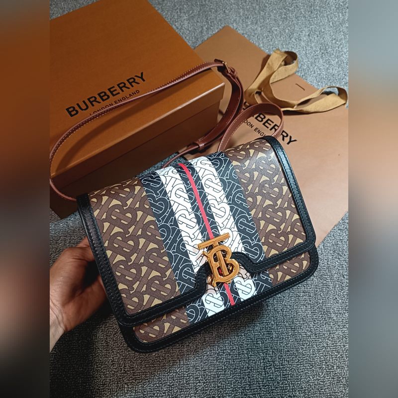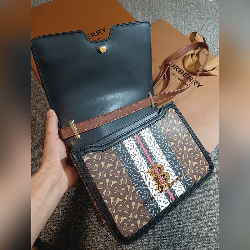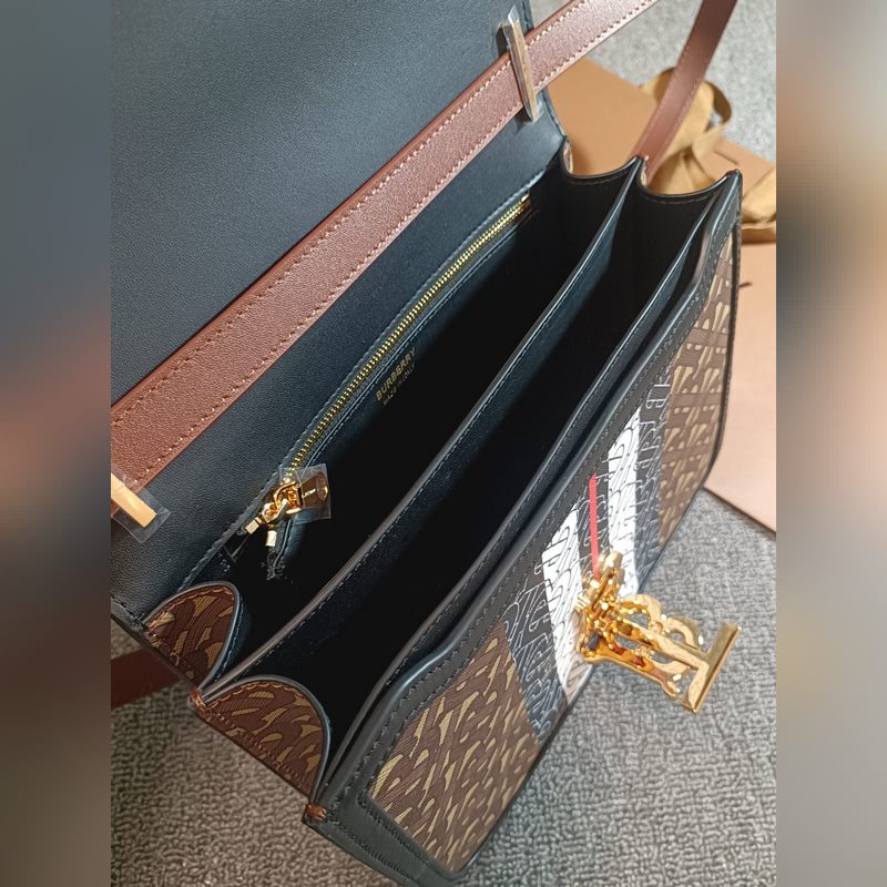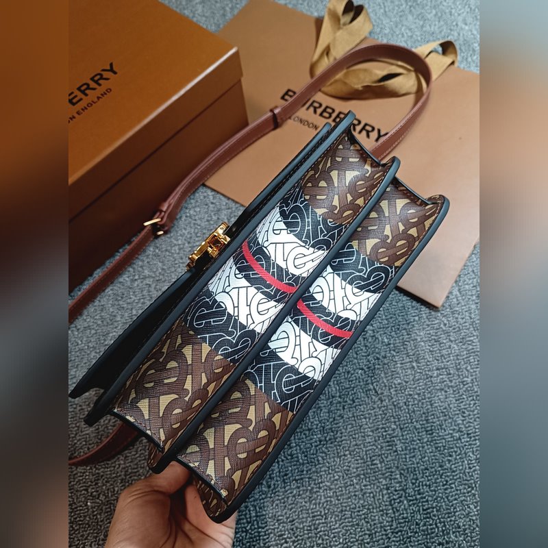 B 브랜드의 신형 디자인으로 제작된 중형 사이즈(25cm) 「TB 전용 로고 잠금장치 가방」입니다. 이 가방은 브랜드의 새로운 친환경 캔버스 소재로 제작되었습니다. 이 친환경 캔버스 소재는 재생 가능한 자원을 주로 사용하여 제조되며 전통적인 코팅 캔버스에 비해 물 사용량이 적고 이산화탄소 배출량도 적습니다. 브랜드 전용 로고 스트라이프가 인쇄되어 있으며 잠금장치에는 Thomas Bur에서 영감을 받은 전용 로고가 장식되어 있습니다. 단독으로 어깨에 메거나 크로스백으로 착용 가능하며 핸드백으로 연출할 수 있습니다. 번호: 89063 크기: 25.5 - 6.5 - 18.5cm.