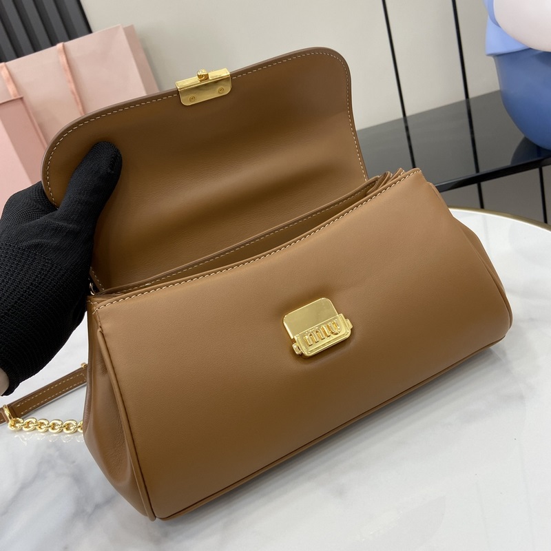 MiuM의 새로운 가방은 클래식한 디자인입니다. 가볍고 패딩 처리된 가죽으로 만들어졌으며 우아한 앞면 덮개와 길이 조절이 가능한 금속 어깨끈이 특징입니다. 다용도적이고 세련되고 우아하며 캐주얼합니다. 일상적인 사용 출퇴근 그리고 그 밖의 모든 경우에 완벽합니다! 모델: 5BD266. 크기: 24x13.5x9cm. 색상: 브라운 풀 레더/오리지널 레더. 이탈리아 디자인