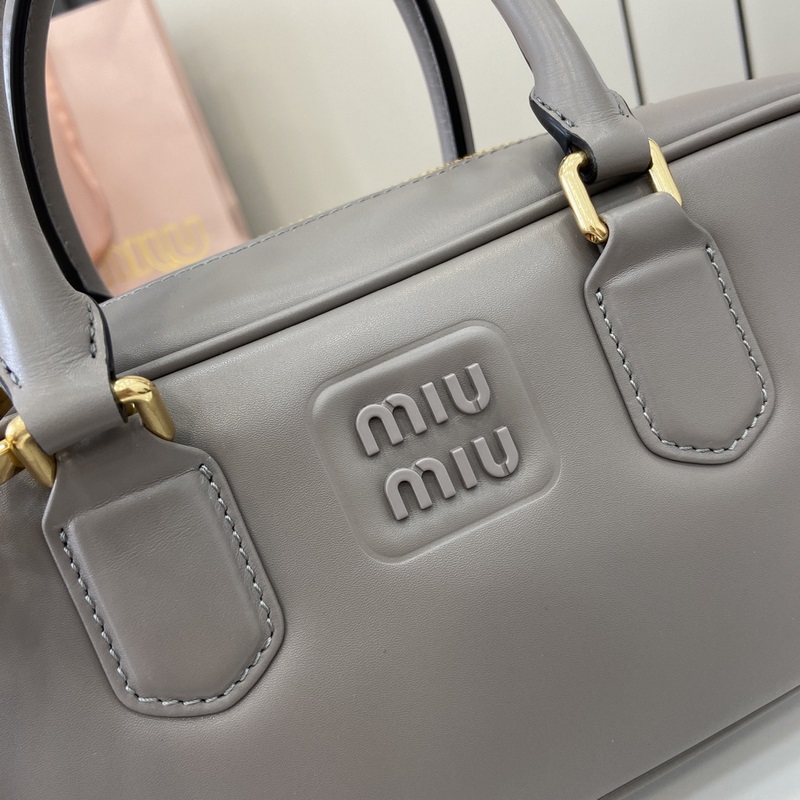 [신규] 미우미우 아르카디 미디엄(27cm) 코냑색 소가죽 볼링 핸드백/