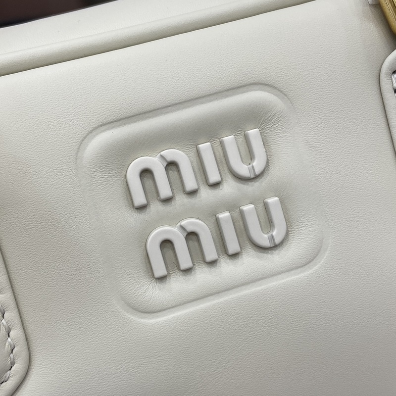 [신규] 미우미우 아르카디 미디엄(27cm) 코냑색 가죽 볼링 핸드백/크로스바디 백 이 아르카디 핸드백은 즉각적인 패션이 현실을 반영한 물질적 형태로 표현된 독특한 컨셉을 보여줍니다. 금속 하드웨어의 마감을 보완하는 문자 로고는 정교하게 제작되어 독특하며 알아볼 수 있는 클래식한 스타일을 보여줍니다. 역동적이고 우아한 라인은 조절 및 탈착이 가능한 어깨 스트랩과 조화를 이루어 실용적이고 다재다능한 디자인에 현대적인 매력을 더합니다. 탈부착이 가능한 조절식 어깨 스트랩 지퍼 잠금 전면에 래커로 칠한 금속 글자 지퍼가 달린 주머니가 늘어서 있습니다. 발로 모델: 5BB148. 크기: 27(길이) x 12(너비) x 9cm(두께) 색상: 화이트 풀 그레인 가죽/오리지널 가죽