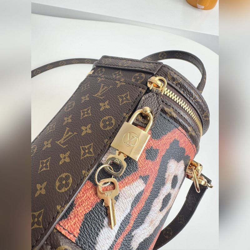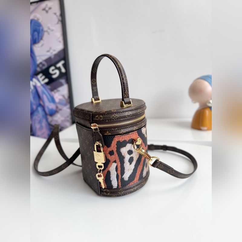 특별한 패키지의 다이내믹한 칩 해외 오리지널 싱글 M13846 한정판 리얼 샷! 크리에이티브 디렉터 니콜라 제스키에르가 2025년 크루즈 컬렉션을 위해 상징적인 칸느 가방을 재해석했습니다. 이 아이템은 LV 애니멀 시리즈의 일부로 등장합니다. 2016년 가을/겨울 컬렉션은 레오파드 프린트 캔버스에 영지를 상징하는 모노그램 패턴으로 장식한 디자인에서 영감을 받았습니다. LV 자물쇠(패드 록)와 탈부착 가능한 스트랩을 갖추고 있어 다양한 운반 옵션을 제공합니다. 크기: 15 x 17 x 15cm