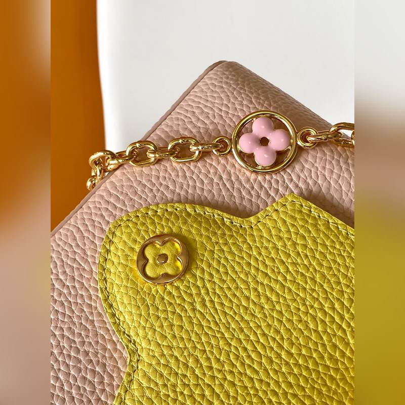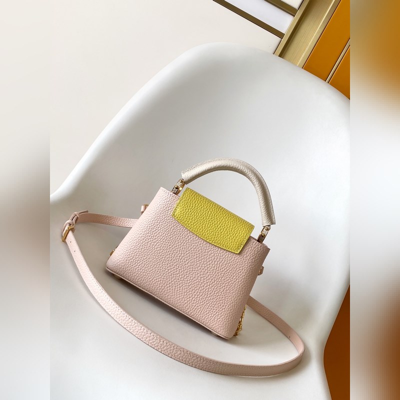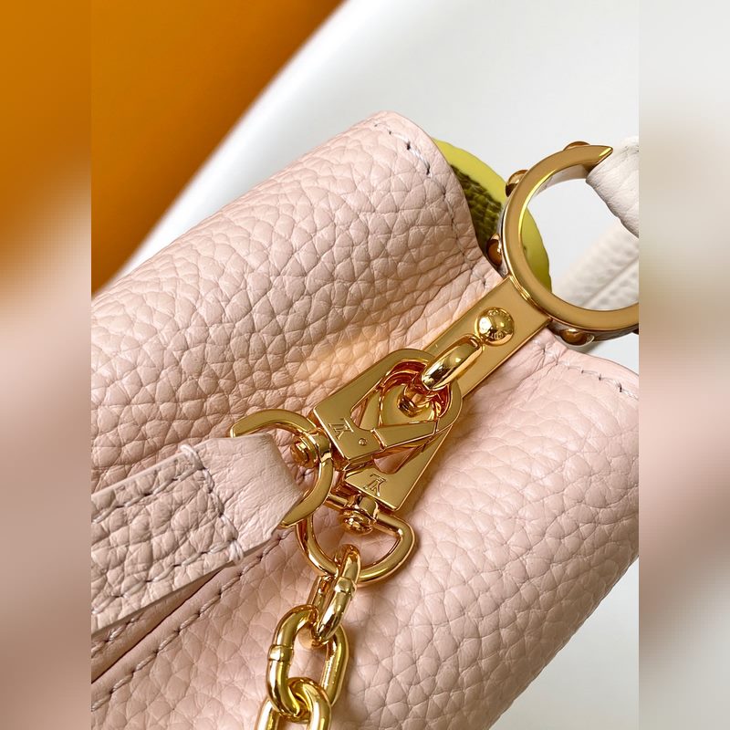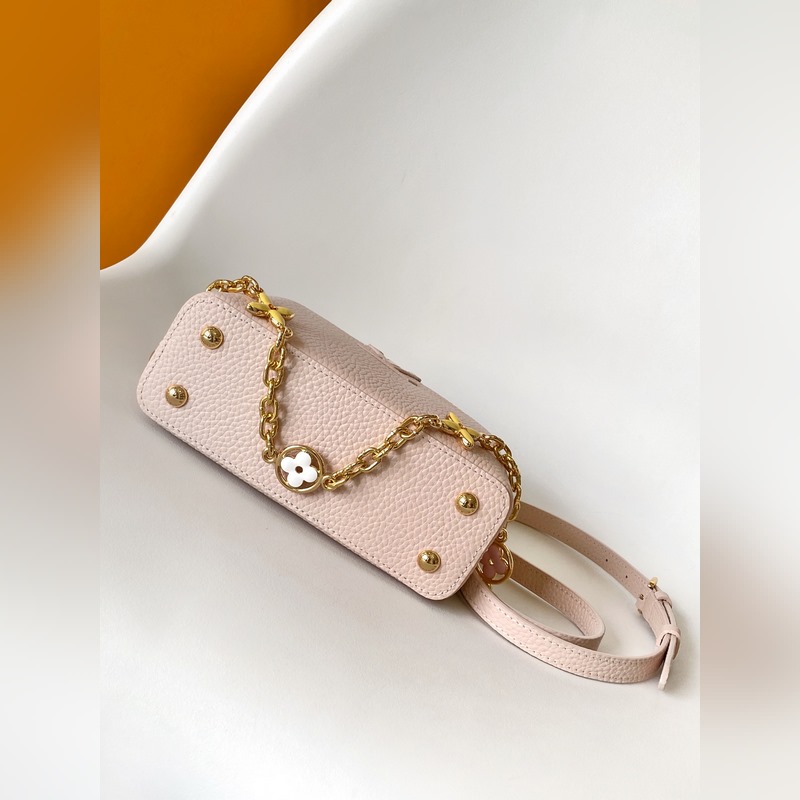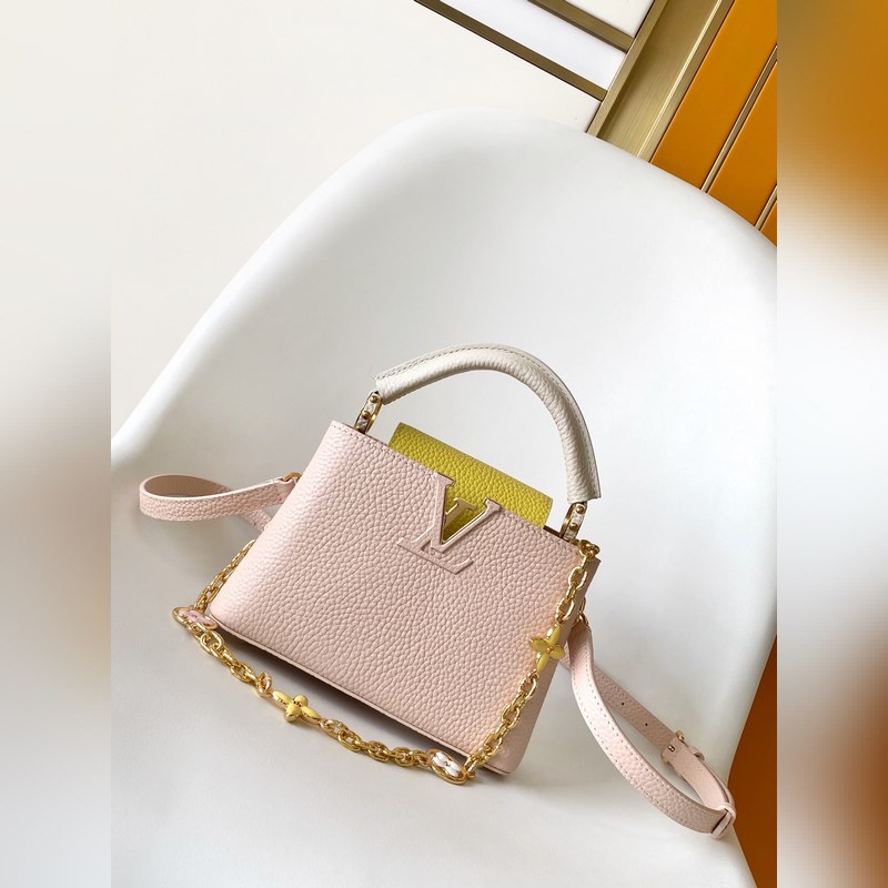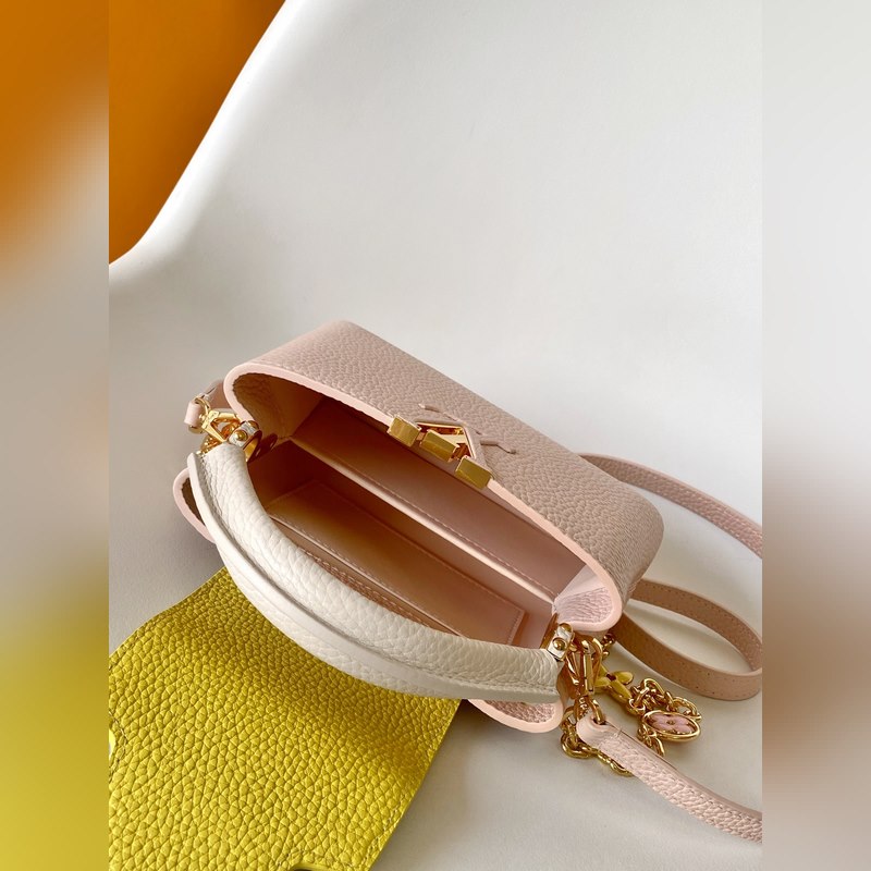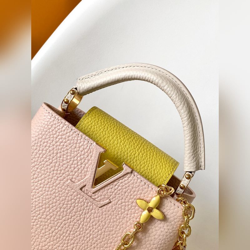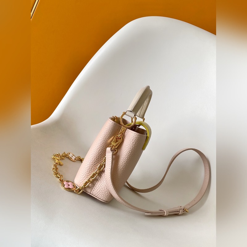 M23951 분홍색 M25339 회백색 M23950 검정색 M11343 퓨어 화이트와 핑크 M25386 블랙과 화이트 M23952 화이트와 블루 M24471 그린 M22514 화이트와 옐로우 M22375 크로커스 M20845 퓨어 화이트 M20844 피치 핑크 최고급 오리지널 가죽 다이내믹 가변 코드 칩 이 카프신 미니 백은 타우리옹 가죽으로 만들어졌으며 웅장한 러브 엘록 체인 손으로 그린 에나멜 모노그램 요소와 LV 자물쇠를 강조하는 직조 체인 링크. 가죽 LV 로고는 화려한 느낌을 더해줍니다. 26.5 x 17.5 x 9.0cm (가로 x 세로 x 높이) 21.0 x 14.0 x 8.0 cm (가로 x 세로 x 높이) 16.3 x 11.0 x 6.5cm (가로 x 세로 x 높이) 타우리옹 가죽 타우리옹 가죽 트림 소가죽 안감 금속 부품 유약 효과 플랩은 안쪽 또는 바깥쪽에 배치할 수 있습니다. 내부 수납 공간에 패치 포켓이 있습니다. 금속 스터드 어깨끈: 탈부착 가능 길이 조절 가능 손잡이 길이: 55.0cm 조절 가능한 스트랩 길이: 59.0cm 체인: 제거 가능 체인 반 길이: 31.0cm 핸들: 단일 핸들