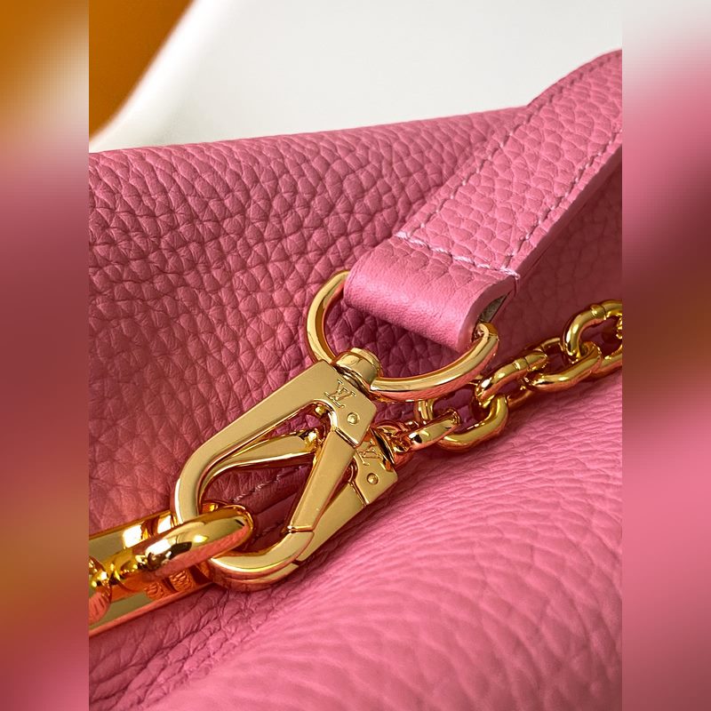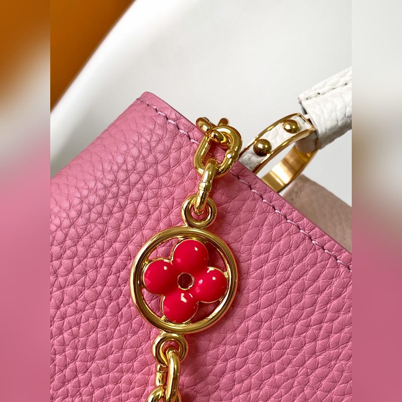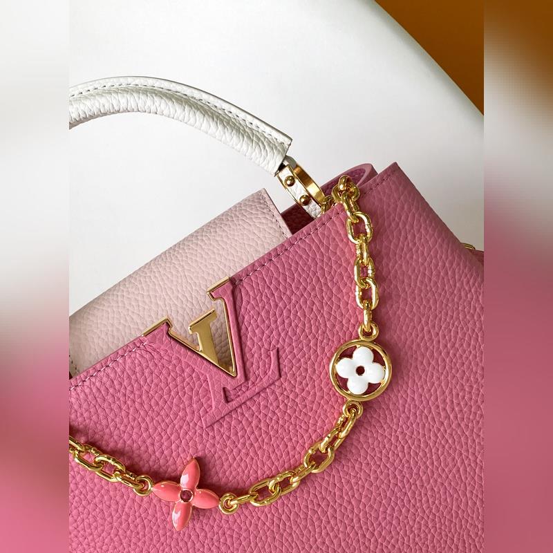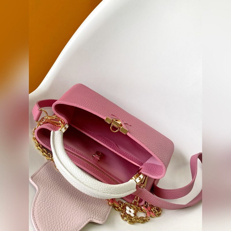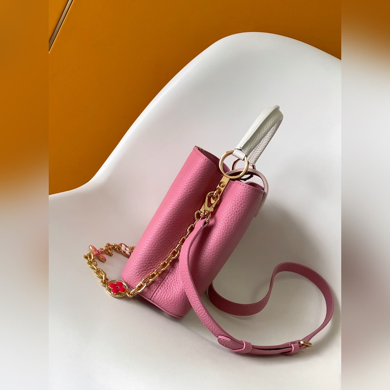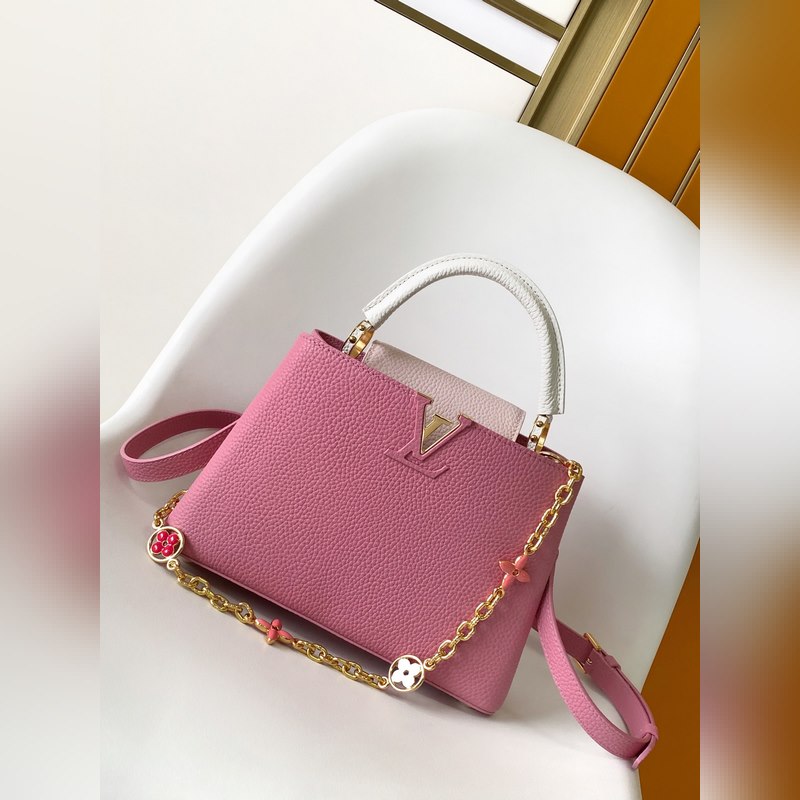 M23951 분홍색 M25339 미색 M23950 검정색 M11343 순백색과 분홍색 M25386 검은색과 흰색 M23952 흰색과 파란색 M24471 녹색 M22514 흰색과 노란색 M22375 수선화 M20845 순백색 M20844 복숭아색 핑크색 최고급 오리지널 가죽 다이내믹 가변 코드 칩 이 Capucines 미니 가방은 타우리옹 가죽으로 만들어졌으며 웅장한 Lov 엘록 체인 손으로 그린 에나멜 모노그램 요소와 LV 자물쇠를 강조하는 직조 체인 링크. 가죽 LV 로고는 화려한 느낌을 더해줍니다. 26.5 x 17.5 x 9.0cm (가로 x 세로 x 높이) 21.0 x 14.0 x 8.0cm (가로 x 세로 x 높이) 16.3 x 11.0 x 6.5cm (가로 x 세로 x 높이) 타우리옹 가죽 타우리옹 가죽 트림 소가죽 안감 금속 부품 유약 효과 플랩은 안쪽 또는 바깥쪽에 배치할 수 있습니다. 내부 수납 공간에 패치 포켓이 있습니다. 금속 스터드 어깨끈: 탈부착 가능 길이 조절 가능 손잡이 길이: 55.0cm 조절 가능한 스트랩 길이: 59.0cm 체인: 제거 가능 체인 반 길이: 31.0cm 핸들: 단일 핸들