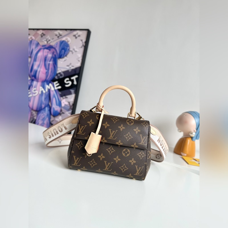 동적 칩 매칭 카운터 패키징 해외 오리지널 싱글 M46055 독점 리얼 샷! 이 클뤼니 미니 핸드백은 모노그램 캔버스 소재에 루이 비통의 상징적인 토롱 핸들과 가죽 열쇠고리로 구성되어 브랜드 애호가들의 마음을 사로잡을 수 있도록 디자인되었습니다. 브랜드 패브릭 숄더 스트랩은 원하는 대로 분리할 수 있어 다양한 휴대 옵션을 제공합니다. 크기: 20×16×7.5cm