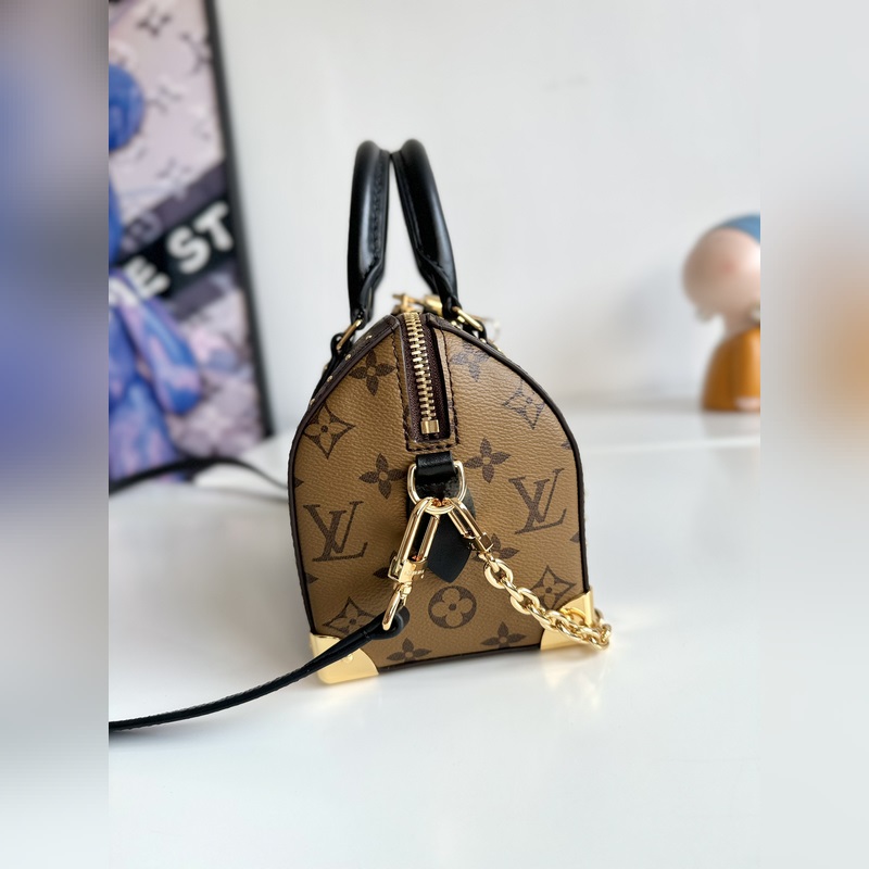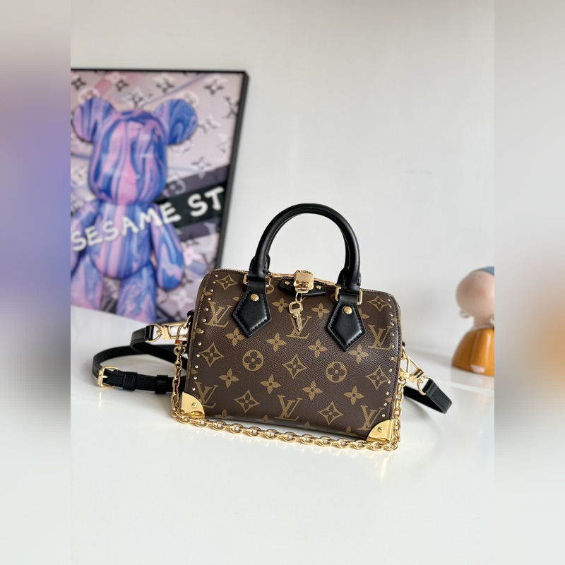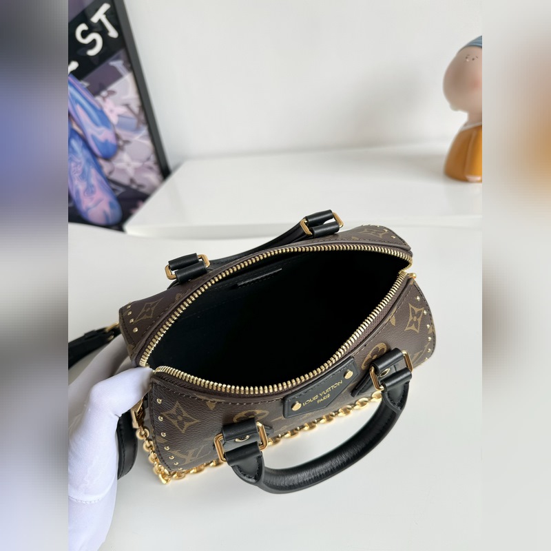동적 칩 매칭 특수 패키징 해외 오리지널 싱글 M13146 독점 리얼 샷! 스피디 트렁크 핸드백은 대담한 컨셉으로 클래식한 디자인을 재해석했으며 루이 비통 2025 크루즈 쇼에서 눈부신 데뷔를 했습니다. 모노그램 캔버스와 모노그램 리버스 트림이 조화를 이루며 니콜라 제스키에르의 시그니처 브러시 스트로크를 선보이고 눈부신 메탈 부품은 브랜드의 오랜 트렁크 제작 전통에 경의를 표합니다. 어깨끈과 체인은 모두 분리 가능하므로 몸에 걸치거나 어깨에 메거나 손에 들고 다닐 수 있습니다. 크기: 20.5 x 13.5 x 11cm