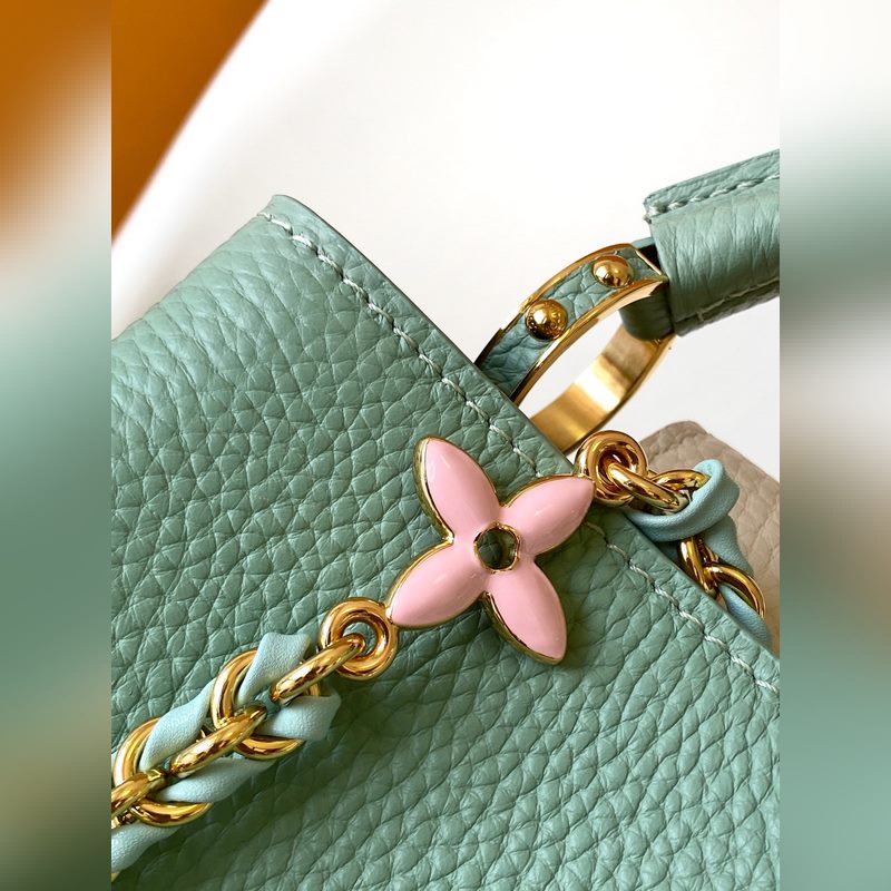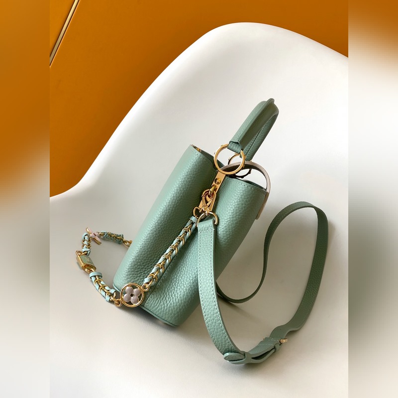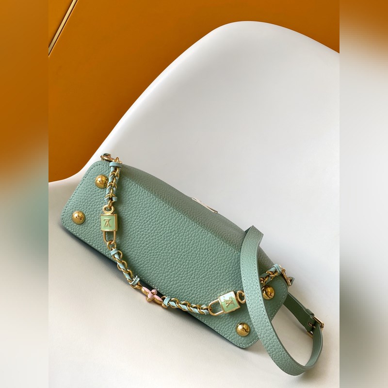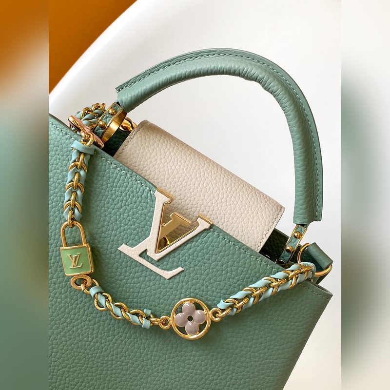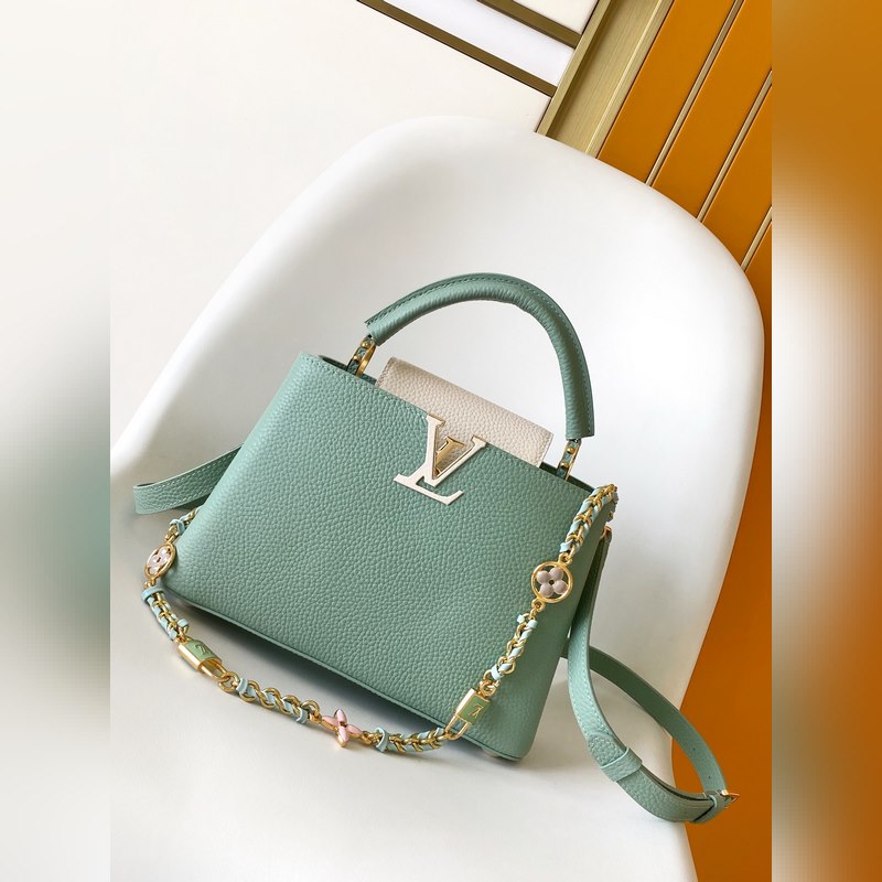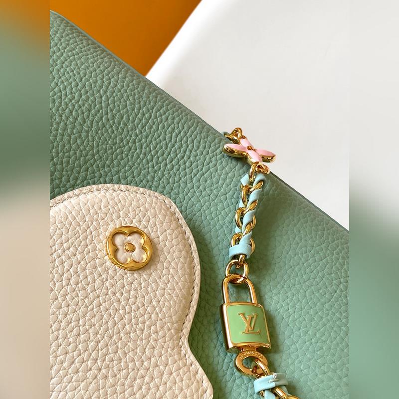 M23951 분홍색 M25339 회백색 M23950 검정색 M11343 퓨어 화이트와 핑크 M25386 블랙과 화이트 M23952 화이트와 블루 M24471 그린 M22514 화이트와 옐로우 M22375 크로커스 M20845 퓨어 화이트 M20844 피치 핑크 최고급 오리지널 가죽 다이내믹 가변 코드 칩 이 카프신 미니 백은 타우리옹 가죽으로 만들어졌으며 웅장한 러브 엘록 체인 손으로 그린 에나멜 모노그램 요소와 LV 자물쇠를 강조하는 직조 체인 링크. 가죽 LV 로고는 화려한 느낌을 더해줍니다. 26.5 x 17.5 x 9.0cm (가로 x 세로 x 높이) 21.0 x 14.0 x 8.0cm (가로 x 세로 x 높이) 16.3 x 11.0 x 6.5cm (가로 x 세로 x 높이) 타우리옹 가죽 타우리옹 가죽 트림 소가죽 안감 금속 부품 유약 효과 플랩은 안쪽 또는 바깥쪽에 배치할 수 있습니다. 내부 수납 공간에 패치 포켓이 있습니다. 금속 스터드 어깨끈: 탈부착 가능 길이 조절 가능 손잡이 길이: 55.0cm 조절 가능한 스트랩 길이: 59.0cm 체인: 제거 가능 체인 반 길이: 31.0cm 핸들: 단일 핸들
