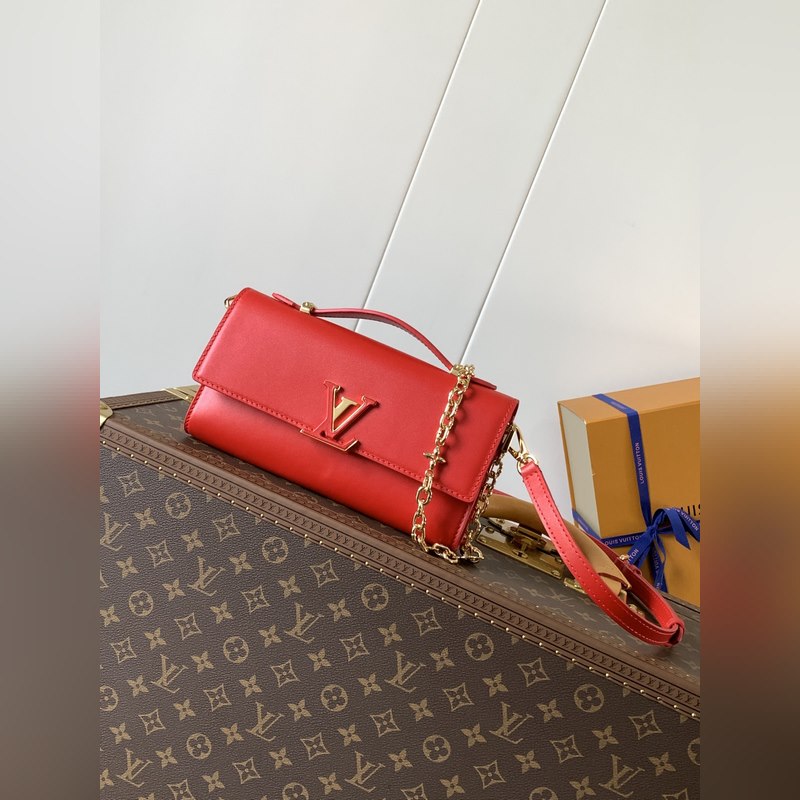 최고 품질의 오리지널 싱글 가변 코드 칩 M12143 검정 M12405 빨강 M12265 흰색 체인형 월릿 Capucines 정교한 장인 정신과 우아한 스타일이 결합된 이 핸드백은 부드러운 가죽에 클래식한 LV 문자가 장식되어 있습니다. 탈착식 금속 체인과 가죽 숄더 스트랩이 포함되어 있어 손으로 들거나 어깨에 메거나 몸에 걸칠 수 있습니다. 깔끔한 내부에는 모노그램 플라워 자석 단추 패치 포켓 카드 슬롯이 있습니다. 12 x 4 x 23cm (높이 x 너비 x 길이) 소가죽 소가죽 트림 소가죽 안감 금속 부품 모노그램 꽃 자석 잠금장치 큰 메인 수납공간 카드 슬롯이 있는 내부 패치 포켓 어깨끈: 탈부착 가능 길이 조절 가능 손잡이 길이: 43.0cm 조절 가능한 스트랩 길이: 53.0cm 체인: 제거 가능 체인 반 길이: 22.5cm 핸들: 단일 핸들