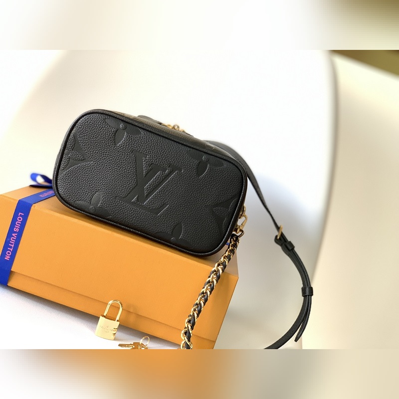 최고급 오리지널 다이내믹 칩 M45598 검정 M45608 회색 M45780 검정 인쇄 M45599 흰색 인쇄 이 허영의 트럼펫 가방은 자이언트 모노그램 엠보싱과 우아한 모양 가죽 상단 손잡이를 결합한 제품입니다. 가죽 끈으로 지퍼를 쉽게 열 수 있고 자물쇠로 안전하게 보관할 수 있습니다. 탈부착이 가능하고 길이 조절이 가능한 어깨끈은 가죽으로 엮은 체인으로 만들어졌습니다. 크기 19×13×11cm
