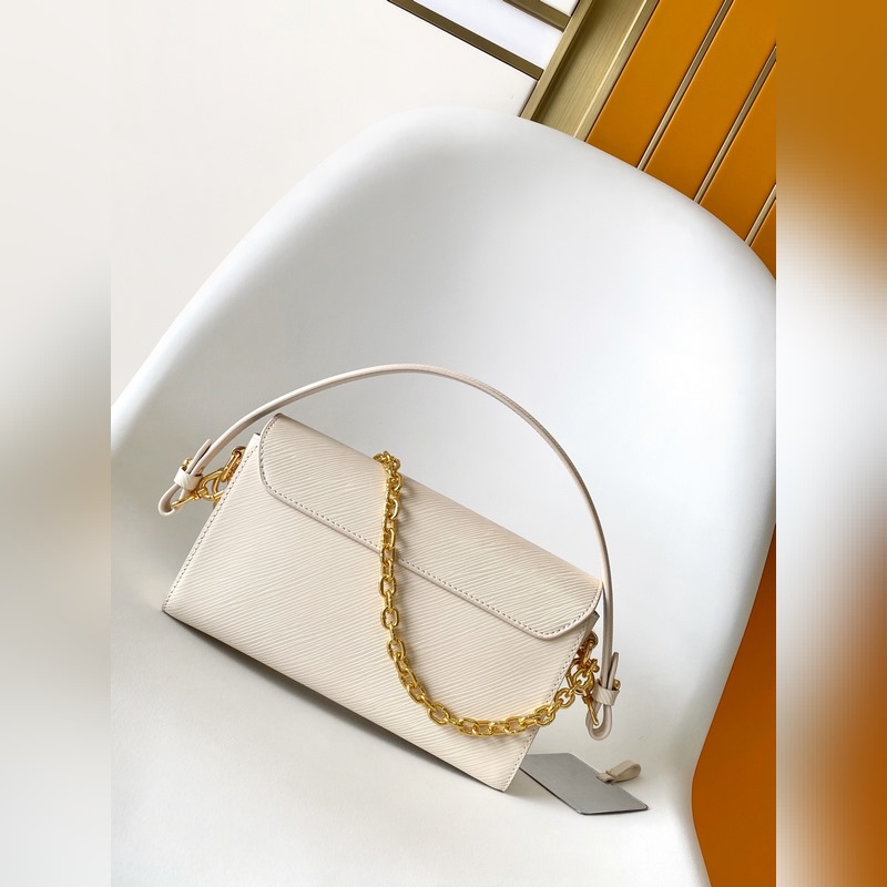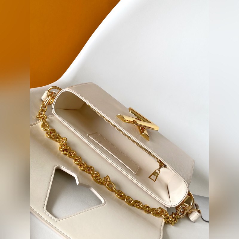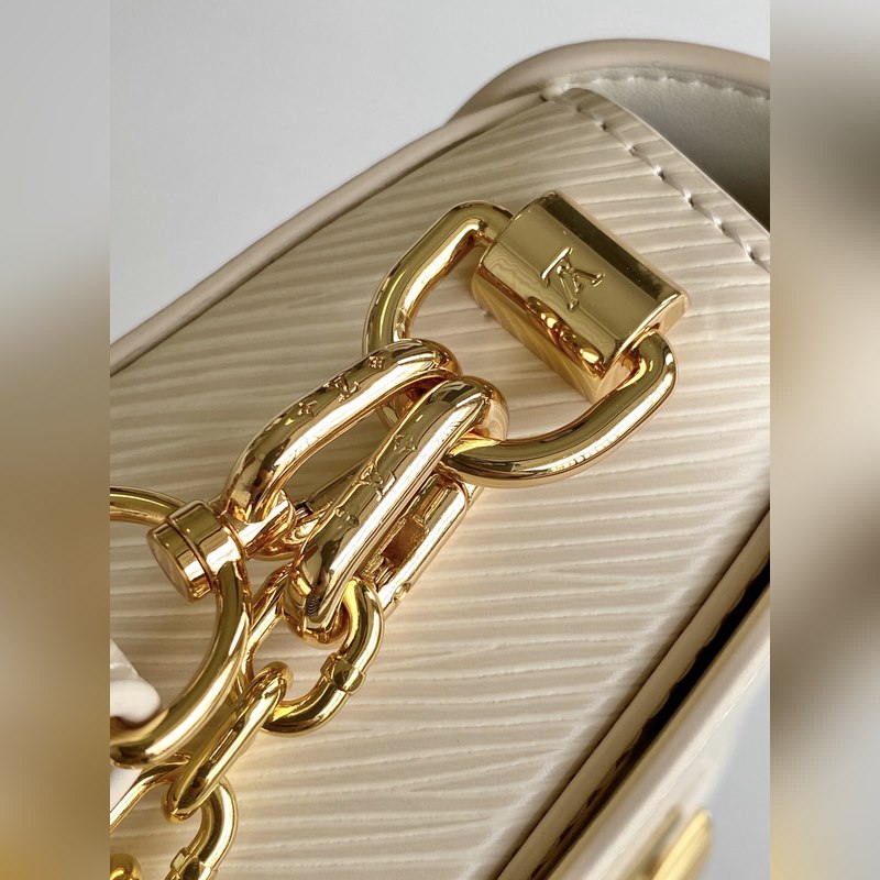 M25336 블랙 드로이드 리플 체인 백 트위스트 웨스트 핸드백 M24549 블랙 M24550 오프화이트 트위스트 웨스트 클래식한 트위스트 실루엣을 블랙 디자인으로 재해석한 제품입니다. 시대를 초월하는 세련된 매력의 롱폼 아이템. 하우스의 노하우가 담긴 LV 트위스트 락 시그니처 장식이 돋보이는 무광택 가죽 소재. 장식으로도 사용할 수 있는 톤온톤 브레이드 체인을 사용하여 다양한 방식으로 연출할 수 있는 스타일. 탈착식 스트랩. 12 x 7 x 23.5cm