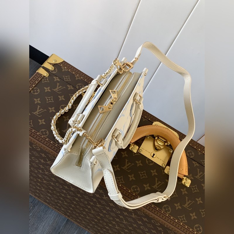 최고 품질의 오리지널 싱글 가변 코드 칩 M23640 검정 M23698 베이지 M23641 아몬드 M23640 흰색과 파란색 인쇄 이 OnTheGo East West 가방은 OnTheGo 소형 토트백 디자인을 도입하고 넉넉한 East West 형태를 모노그램 앙프렝뜨 가죽으로 업데이트했습니다. 가죽 본체에 거대한 모노그램이 양각으로 새겨져 있으며 깔끔한 내부 공간은 일상용품 수납에 적합합니다. 상단 손잡이와 탈착식 가죽 체인 숄더 스트랩을 통해 다양한 운반 방식을 선택할 수 있습니다. 크기: 25.0 x 13.0 x 10.0cm(가로 x 세로 x 높이) 엠보싱 그레인 가죽 세밀한 소가죽 트림 극세사 안감 금속 부품 큰 지퍼식 내부 수납공간 내부 패치 포켓 구석구석 분리 가능한 체인 어깨끈: 탈부착 가능 길이 조절 가능 어깨끈 길이: 35.0cm 조절 가능한 스트랩 길이: 53.0cm 체인: 분리 가능 체인 반 길이: 30.0cm 핸들: 더블 핸들