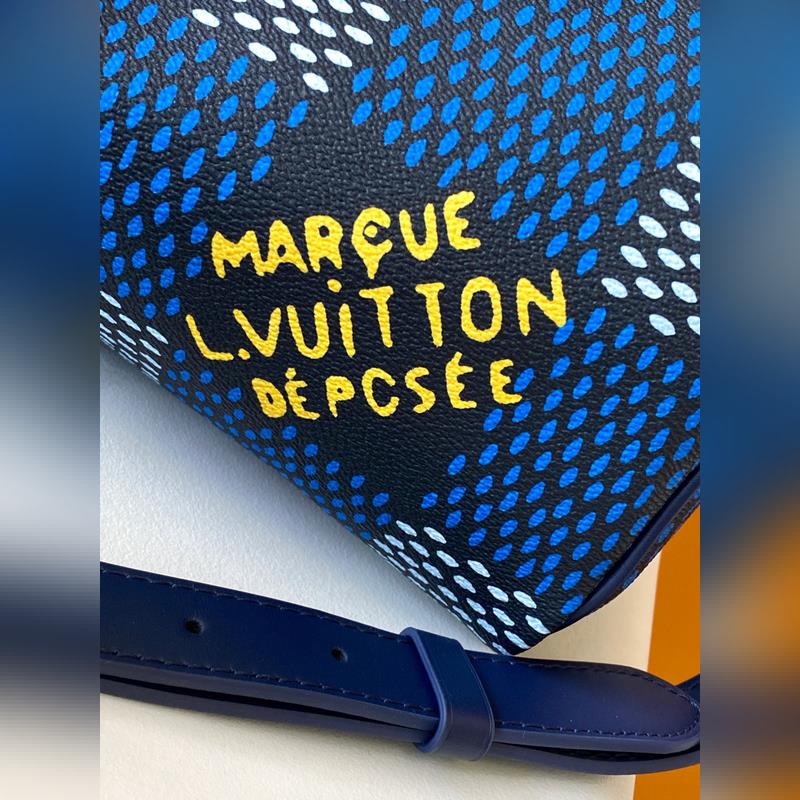 N40691 파란색 체크무늬 최고급 오리지널 SPEEDY 25 반둘리에르 핸드백 이 스피디 25 밴두리에는 파렐 윌리엄스의 새로운 다미에 헤리티지 코팅 캔버스로 만들어졌으며 브랜드의 초기 여행 가방의 디자인에서 영감을 받은 레트로 체크무늬 패턴과 마르크 르뷔통 데포제 로고가 특징입니다. 상단 손잡이와 탈부착 및 길이 조절이 가능한 어깨끈으로 다양한 운반 옵션을 제공합니다. 크기: 25 x 15 x 15cm