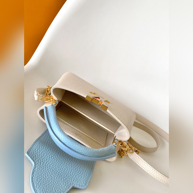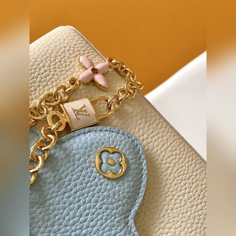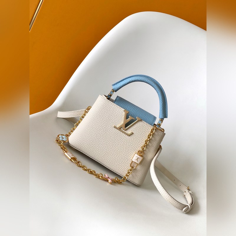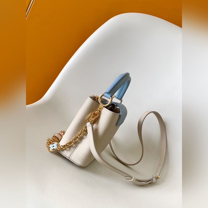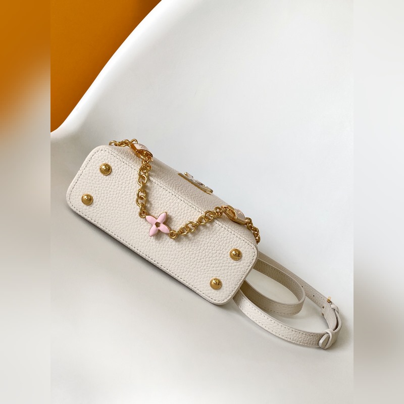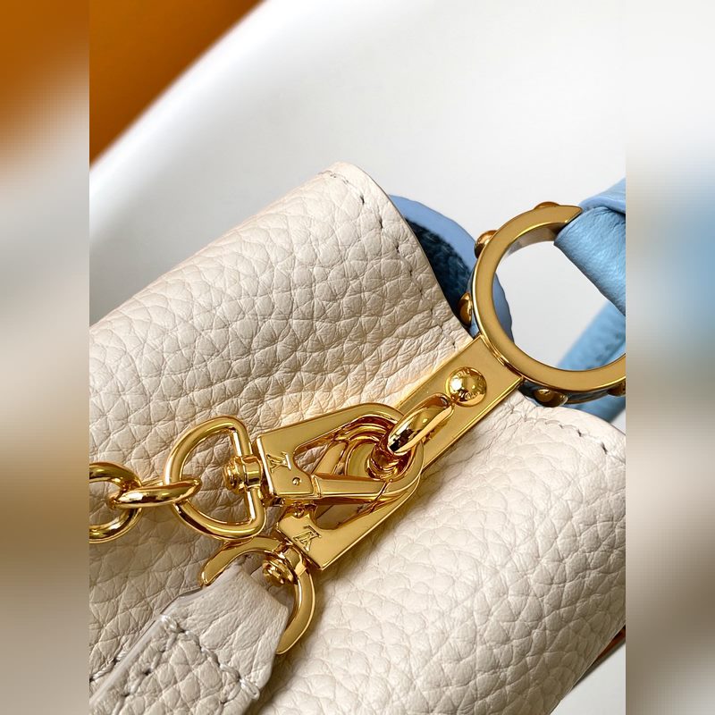 M23951 분홍색 M25339 회백색 M23950 검정색 M11343 퓨어 화이트와 핑크 M25386 블랙과 화이트 M23952 화이트와 블루 M24471 그린 M22514 화이트와 옐로우 M22375 수선화 M20845 퓨어 화이트 M20844 피치 핑크 초극세 오리지널 가죽 다이내믹 가변 코드 칩 이 카프신 미니 백은 타우리옹 가죽으로 만들어졌으며 웅장한 러브 엘록 체인 손으로 그린 에나멜 모노그램 요소와 LV 자물쇠를 강조하는 직조 체인 링크. 가죽 LV 로고는 화려한 느낌을 더해줍니다. 26.5 x 17.5 x 9.0cm (가로 x 세로 x 높이) 21.0 x 14.0 x 8.0 cm (가로 x 세로 x 높이) 16.3 x 11.0 x 6.5cm (가로 x 세로 x 높이) 타우리옹 가죽 타우리옹 가죽 트림 소가죽 안감 금속 부품 유약 효과 플랩은 안쪽 또는 바깥쪽에 배치할 수 있습니다. 내부 수납 공간에 패치 포켓이 있습니다. 금속 스터드 어깨끈: 탈부착 가능 길이 조절 가능 손잡이 길이: 55.0cm 조절 가능한 스트랩 길이: 59.0cm 체인: 제거 가능 체인 반 길이: 31.0cm 핸들: 단일 핸들