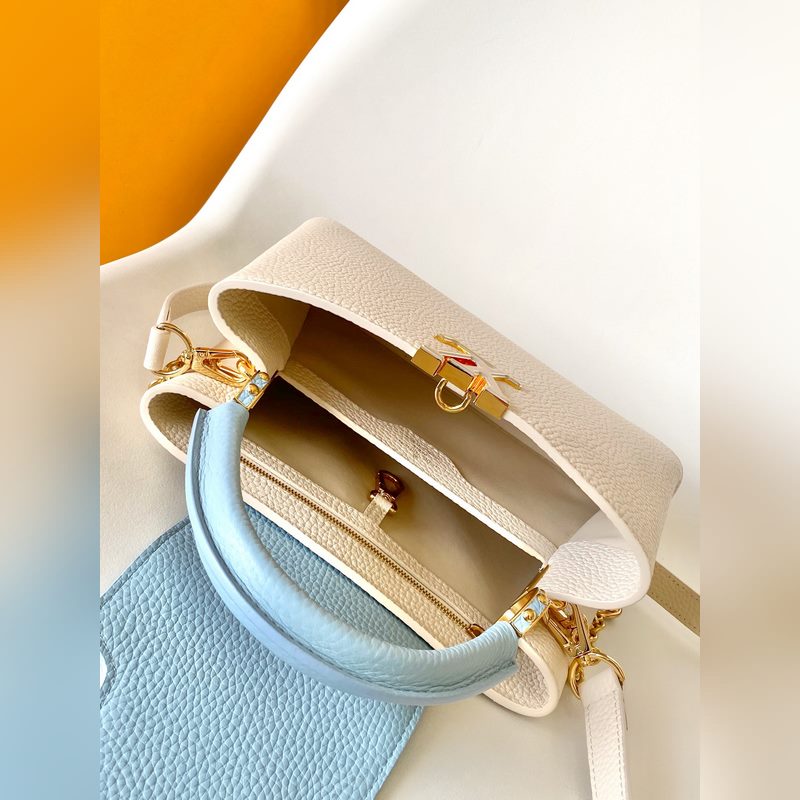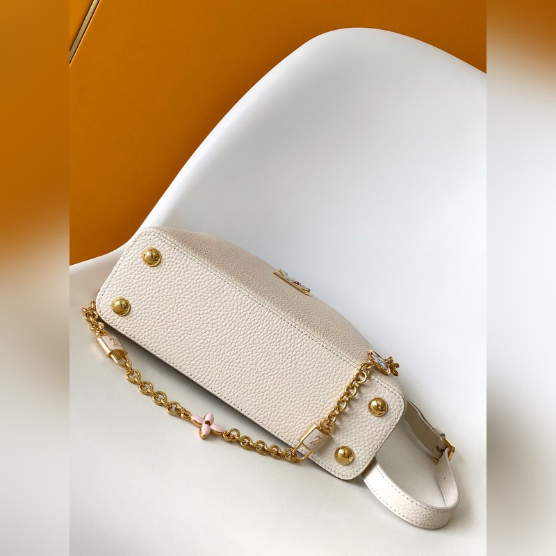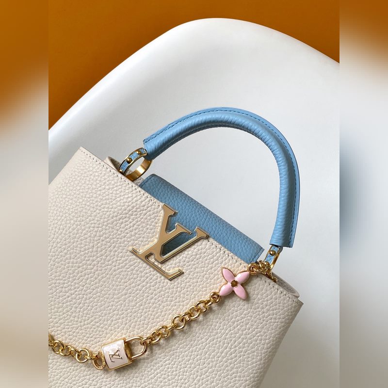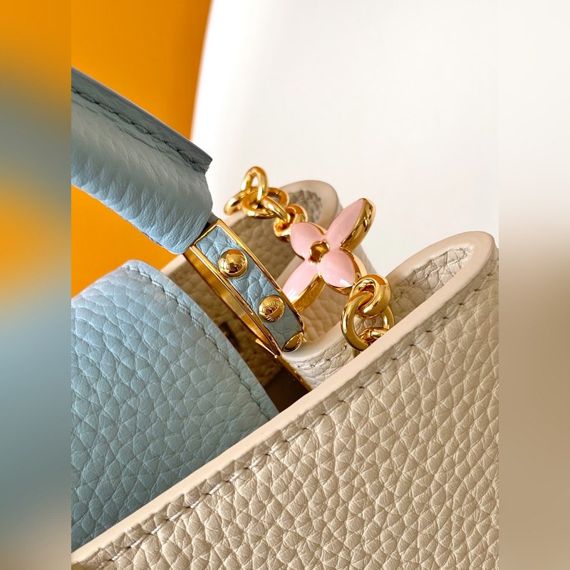 M23951 핑크 M25339 미색 M23950 검정 M11343 퓨어 화이트와 핑크 M25386 블랙과 화이트 M23952 화이트와 블루 M24471 그린 M22514 화이트와 옐로우 M22375 크로커스 M20845 퓨어 화이트 M20844 피치 핑크 최고급 오리지널 가죽 다이내믹 가변 코드 칩 이 카프신 미니 백은 타우리옹 가죽으로 만들어졌으며 웅장한 러브 엘록 체인 손으로 그린 에나멜 모노그램 요소와 LV 자물쇠를 강조하는 직조 체인 링크. 가죽 LV 로고는 화려한 느낌을 더해줍니다. 26.5 x 17.5 x 9.0cm (가로 x 세로 x 높이) 21.0 x 14.0 x 8.0cm (가로 x 세로 x 높이) 16.3 x 11.0 x 6.5cm (가로 x 세로 x 높이) 타우리옹 가죽 타우리옹 가죽 트림 소가죽 안감 금속 부품 유약 효과 플랩은 안쪽 또는 바깥쪽에 배치할 수 있습니다. 내부 수납 공간에 패치 포켓이 있습니다. 금속 스터드 어깨끈: 탈부착 가능 길이 조절 가능 손잡이 길이: 55.0cm 조절 가능한 스트랩 길이: 59.0cm 체인: 제거 가능 체인 반 길이: 31.0cm 핸들: 단일 핸들