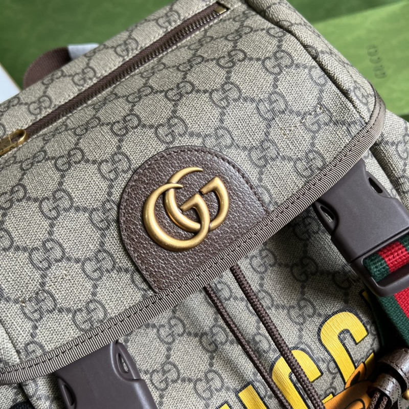 구찌 러브 행진 시리즈는 칠레에 기반을 둔 만화가이자 일러스트레이터인 파블로 델시엘로의 그림 덕분에 장난기 가득한 색채가 가미되었습니다. 기발한 생물체와 장난기 가득한 과일 모티프가 컬러풀한 아플리케와 프린트로 아름답게 표현되어 기성복과 액세서리에 강한 장난기 넘치는 느낌을 줍니다. GG Supreme 스케이트보드 백팩에도 같은 장난기 넘치는 패턴이 사용되었습니다. 베이지색과 흑단색 GG Supreme 캔버스 친환경 소재 갈색 가죽 트리밍 구찌 고양이 프린트 파블로 델시엘로 그림 측면 포켓에 딸기 무늬 면과 린넨 안감에 더블 G. 외피: 측면 포켓 2개와 상단 지퍼 포켓 1개 패딩 처리된 등판과 스트랩 스케이트보드 보관용 릴리스 버클. 모델: 690999. 크기: 34(가로) x 42(세로) x 16cm(깊이) 색상: 갈색/PVC 고양이 무늬.