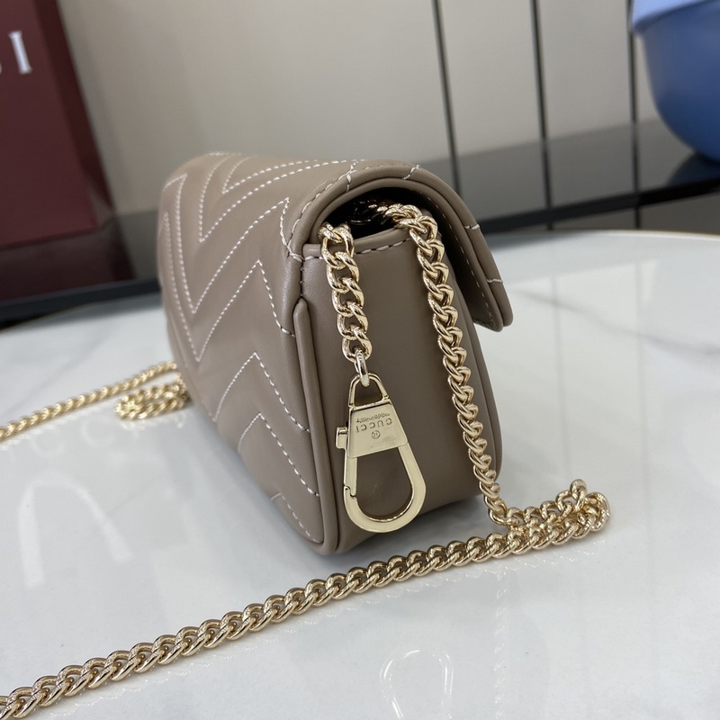 [신제품] GG 마몽트 시리즈 울트라 미니 핸드백 이 초미니 GG 마몬트 핸드백은 퀼팅된 V자형 가죽으로 만들어졌으며 아름다운 베이지 톤으로 선보여 2025년 초봄 컬렉션에 새로운 눈길을 사로잡는 아이템을 추가합니다. 이 작품은 컬렉션의 상징적인 더블 G 모티프로 장식되어 있으며 1970년대 수집품이었던 로고로 지금은 브랜드의 클래식한 상징이 되었습니다. 베이지 그레이 퀼팅 V자형 가죽 라이트 골드톤 하드웨어 면-린넨 혼방 안감 가방에 별도로 부착할 수 있는 열쇠고리 더블 G 체인 숄더 스트랩(60cm 드롭) 무게: 약 0.35kg 모델: 476433. 크기: 16.5(가로) x 10(세로) x 4.5cm(깊이) 색상: 무연탄색 풀 레더/오리지널 레더. 이탈리아어 창조 모델 신장 176cm 아이폰 프로 카드 홀더 립스틱을 넣을 수 있습니다.