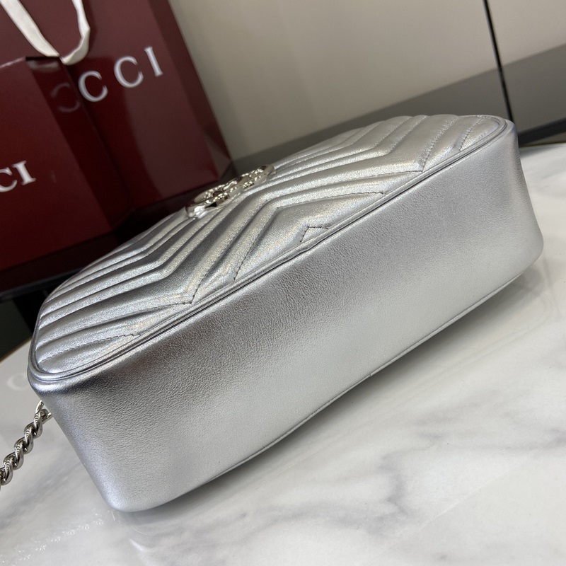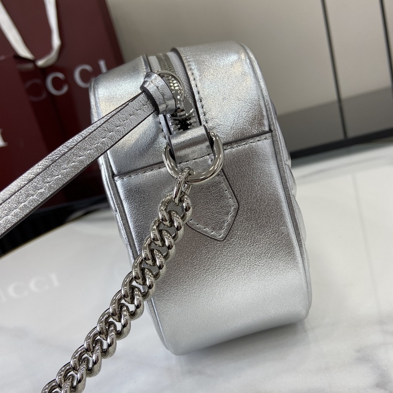 노즈비 [신규] GG 마몽 미니 백 거울 가죽에서 반짝이는 크리스탈에 이르기까지 구찌는 다양한 눈부신 아이템으로 선물 시즌을 축하합니다. 인쇄된 액세서리 또는 반짝이는 가죽 지갑 중에서 선택하여 전체적인 룩에 활력을 더하세요. 이 울트라 미니 GG 마몬트 핸드백은 은색 금속 가죽으로 제작되었습니다. 은색 금속 V자형 가죽 은색 금속 하드웨어 면과 린넨 혼방 안감 핸드백에 별도로 부착할 수 있는 열쇠 고리 더블 G 체인 숄더 스트랩(길이 60cm) 무게: 약 0.394kg 최대 수용 인원: iPhone Pro Max/Plus AirPods 헤드폰 카드 지갑 립스틱 모델: 447632. 크기: 24(길이) x 13(높이) x 7cm(두께) 색상: 실버 풀 레더/오리지널 레더. 이탈리아어 창조