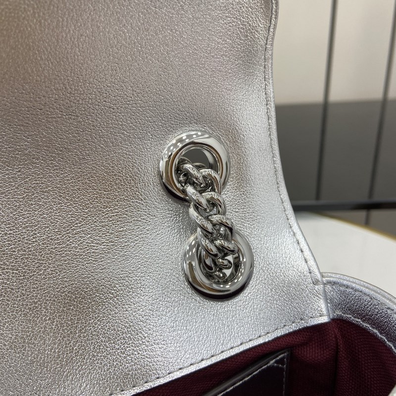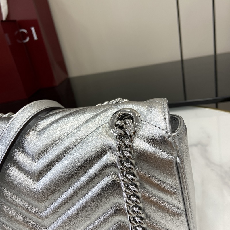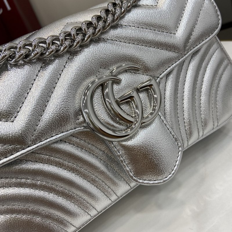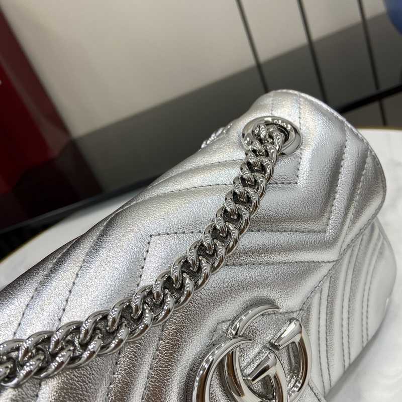 노즈비 [신규] GG 마몽 미니 백 거울 가죽에서 반짝이는 크리스탈에 이르기까지 구찌는 다양한 눈부신 아이템으로 선물 시즌을 축하합니다. 인쇄된 액세서리 또는 반짝이는 가죽 지갑 중에서 선택하여 외모에 생기를 더하세요. 이 울트라 미니 GG 마몬트 백은 은색 금속 가죽으로 제작되었습니다. 은색 금속 V자형 가죽 은색 금속 하드웨어 면과 린넨 혼방 안감 가방에 별도로 부착할 수 있는 열쇠고리 더블 G 체인 숄더 스트랩(길이 60cm) 무게: 약 0.35kg 최대 수용 인원: iPhone Pro Max/Plus AirPods 헤드폰 카드 지갑 립스틱 모델: 446744. 크기: 22(가로) x 13(세로) x 6(깊이)cm 색상: 실버 풀 레더/오리지널 레더. 이탈리아 디자인
