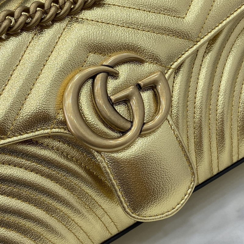 노즈비 [신제품] 거울처럼 매끄러운 가죽부터 반짝이는 크리스털과 우아한 벨벳까지 구찌는 다양한 아이템으로 선물 시즌을 축하합니다. 브랜드의 상징적인 핸드백 컬렉션에서 선택하여 전체적인 룩에 활력을 불어넣으세요. 금색 금속 가죽 그리고 레트로한 반짝이는 팔라듐색 하드웨어 빨간 면 안감 더블 지 지퍼가 달린 내부 포켓 슬라이딩 체인 스트랩은 어깨 스트랩(높이 55cm) 또는 상단 손잡이(높이 30cm)로 사용할 수 있습니다. 스냅 버튼 플랩 무게: 약 0.648kg 모델: 443497. 크기: 가로 26cm x 세로 15cm x 깊이 7cm 색상: 금색 가죽/원래 가죽. 이탈리아 디자인