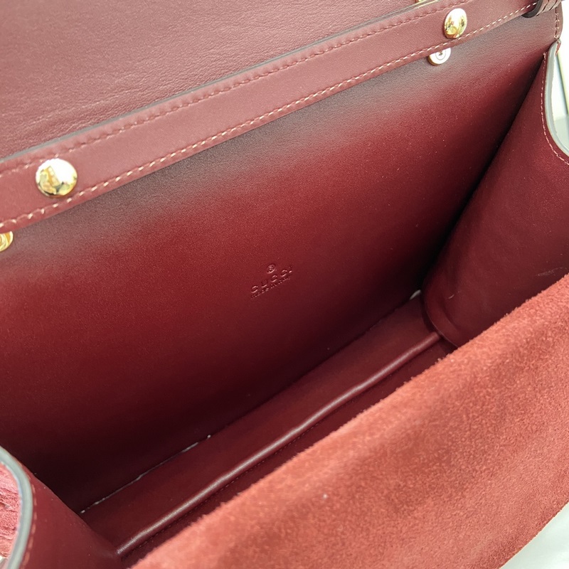 [신제품] 구찌의 크리에이티브 디렉터 사바토 데 사르노(Sabato de Sarno)가 클래식한 디오니소스 시리즈의 작은 핸드백을 새롭게 선보였습니다. 버건디 GG 스웨이드 소재로 제작된 이 핸드백은 플랩 디자인과 탈착식 가죽 숄더 스트랩이 특징인 호랑이 머리 자물쇠가 달려 있어 크로스 바디로 휴대할 수 있습니다. 버건디 GG 스웨이드 밝은 금색 톤 하드웨어 부르고뉴 가죽 안감 내부: 2개의 메인 수납공간과 1개의 플랩 포켓 손잡이 높이: 11cm 탈착식 가죽 어깨끈(높이 51.5~58cm 길이 109~120cm) 쌍호랑이 머리 자물쇠 모델: 813399. 작은 사이즈: 29.5cm(가로) x 20cm(세로) x 10.5cm(깊이) 색상: 빨간색 브러시/천연 가죽. 이탈리아 디자인