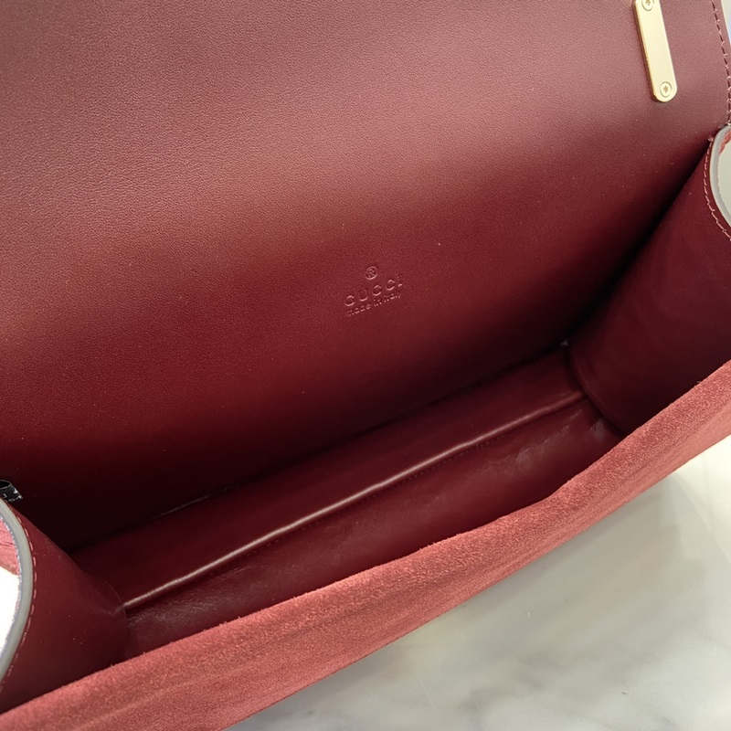 구찌의 크리에이티브 디렉터 사바토 데 사르노가 클래식한 디오니소스 시리즈의 스몰 숄더백을 새롭게 디자인했습니다. 이 핸드백은 버건디 GG 스웨이드 소재에 호랑이 머리 자물쇠와 플랩 디자인 길이를 조절할 수 있는 슬라이딩 체인으로 다양한 스타일을 연출할 수 있습니다. 버건디 GG 스웨이드 밝은 금색 톤 하드웨어 부르고뉴 가죽 안감 내부: 2개의 주요 수납공간과 1개의 플랩형 오픈 포켓 길이 조절 가능한 슬라이딩 체인 숄더 스트랩 43cm 드롭 또는 24.5cm 상단 핸들 쌍호랑이 머리 자물쇠 무게: 약 700g 크기: 27.5cm(가로) x 16cm(세로) x 8cm(깊이) 모델: 818145. 색상: 보르도 매트 프레스/오리지널 가죽. 이탈리아어 창조