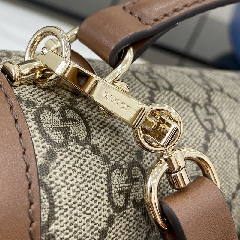 [신제품] 구찌 Horsebit 1955 시리즈 소형 핸드백 크리에이티브 디렉터 사바토 데 사르노(Sabato De Sarno)의 비전에 따라 타나바타 발렌타인데이 광고 캠페인에 소개된 구찌 호스빗 1955 시리즈 핸드백은 브랜드의 기마 유산에서 유래된 이중 링과 긴 막대 디자인을 해석합니다. 이 작은 핸드백은 새로운 GG 캔버스로 만들어졌으며 독특한 핫 엠보싱 공정을 통해 섬세한 패턴과 부드럽고 정교한 느낌을 줍니다. 베이지와 다크 브라운 GG 캔버스는 촉감이 부드럽고 섬세합니다. 구찌 로쏘 안코라 가죽 파이핑 밝은 금색 톤의 하드웨어 갈색 면과 리넨 혼방 안감 말이 씹은 앞부분의 세부 사항 손잡이 높이: 4cm 탈착식 가죽 어깨끈(47-55cm) 스트랩 길이: 95-110cm 플랩 클로저 무게: 약 0.45kg 모델: 815206. 크기: 22.6(가로) x 12.7(세로) x 5.6(깊이)cm 색상: 갈색 PVC/원래 가죽. 이탈리아 디자인