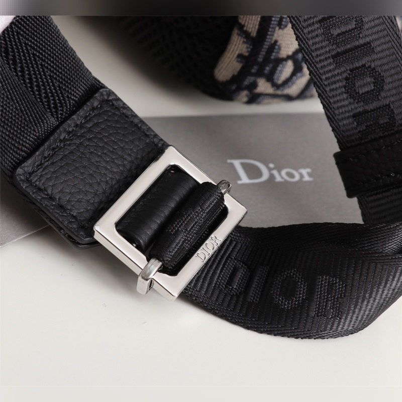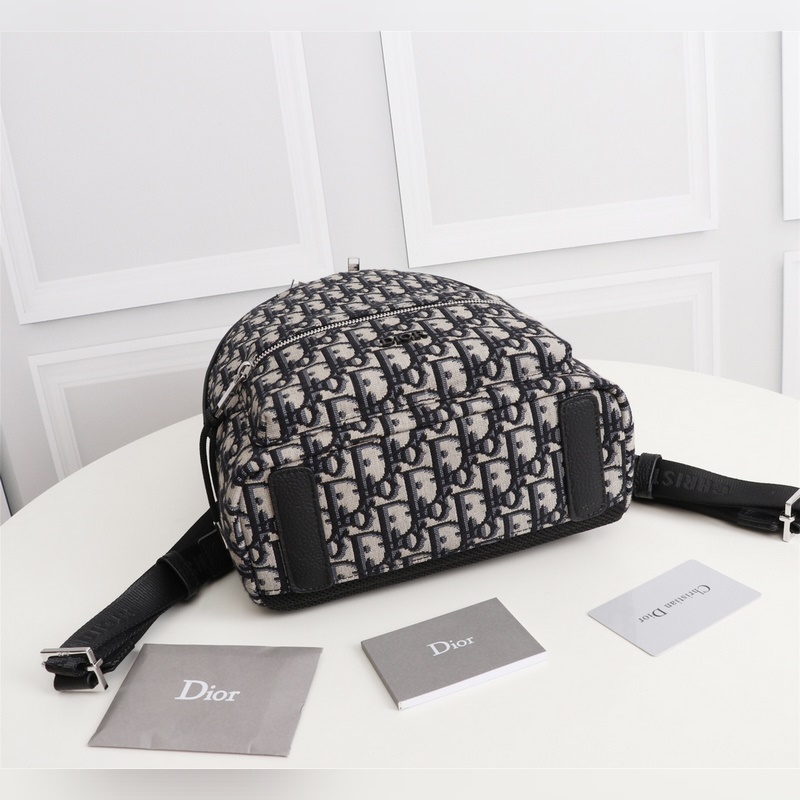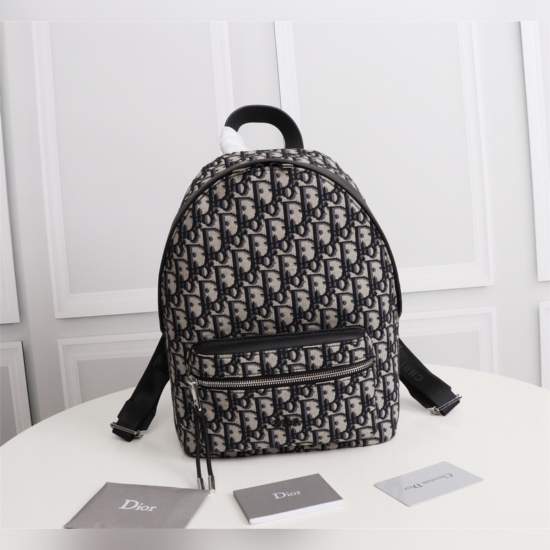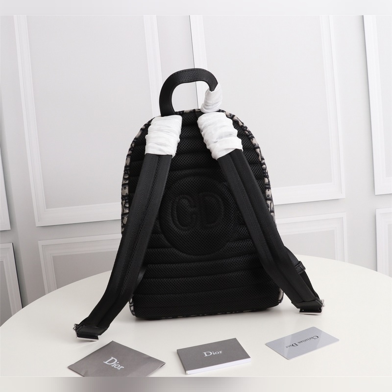 캔버스 소재와 블랙 그레인 송아지 가죽 소재의 디올 오블리크 백팩에 D