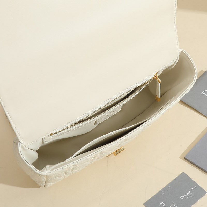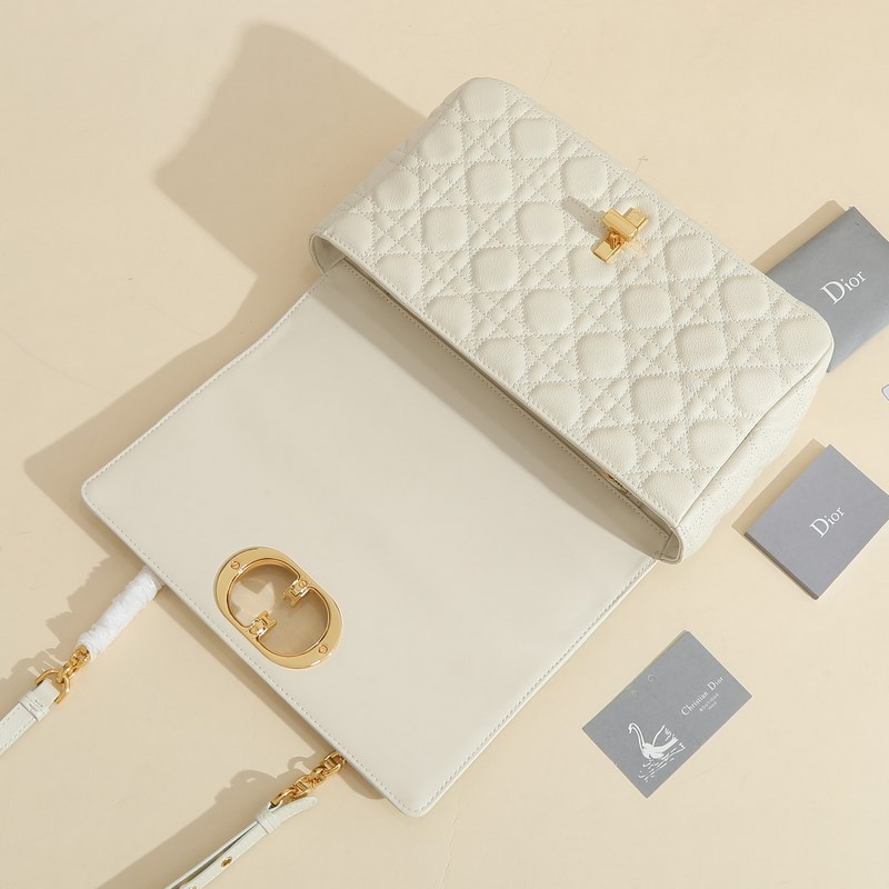 CARO 핸드백 M9243 Caro 핸드백은 소가죽으로 제작되었으며 상징적인 바구니 짜기 스티치로 퀼팅 디테일을 더했습니다. 뒷면에는 엠보싱 로고 30 Montaigne이 새겨져 있습니다. 소재는 부드럽고 플랩은 크리스챤의 향수병 마개에서 영감을 받은 레트로한 골드 마감의 금속 CD 걸쇠로 장식되어 있습니다. 큰 사이즈는 탈부착이 가능한 시그니처 CD 링크 숄더 스트랩과 함께 제공되며 더 우아하고 세련된 느낌을 위해 자수 장식된 넓은 숄더 스트랩으로 교체할 수도 있습니다. 일상적인 룩과 저녁 파티 모두에 쉽게 착용할 수 있습니다. 아이템 번호: M9243 크기: 28 x 17 x 9cm