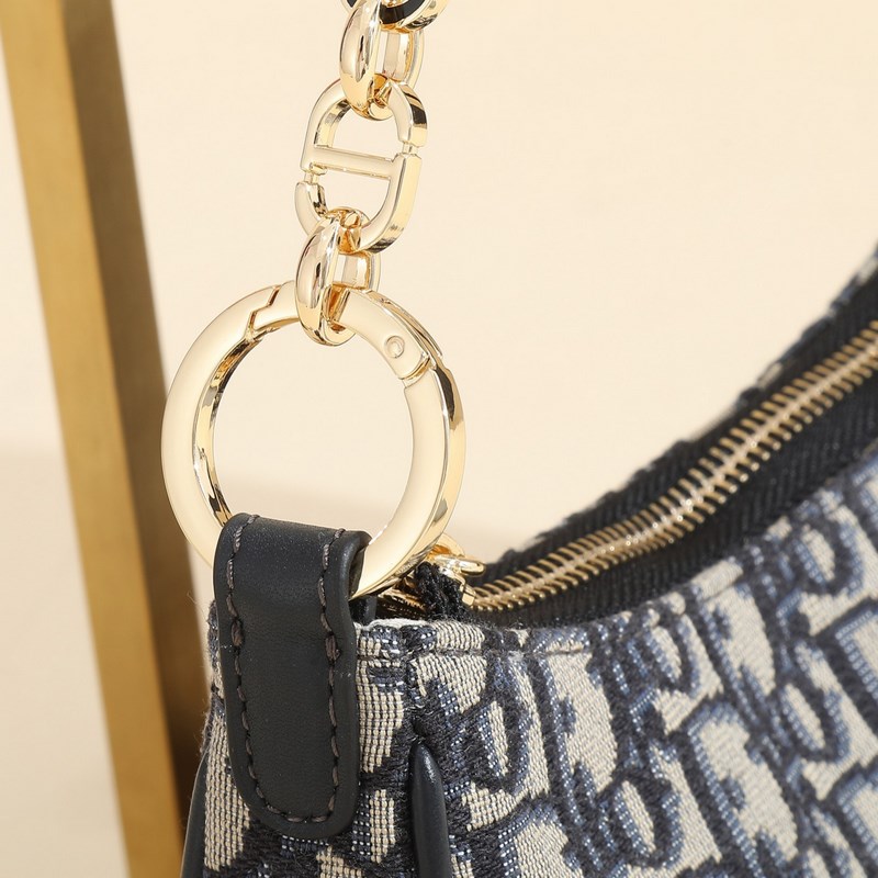 Dior LOUNGE 핸드백 Moon Bag Bran 이 CD 라운지 백은 2023년 여름 신상 모델로 디올의 현대적인 미학과 꾸뛰르 스타일을 구현합니다. 디올의 상징적인 패턴을 강조하는 블루 오블리크 프린트 패브릭으로 제작되었습니다. 클래식한 체인은 가죽으로 만들어졌으며 골드 마감의 메탈과 톤 온 톤 에나멜 체인 링크가 교차되어 있습니다. 접어서 어깨에 메거나 손에 들 수 있습니다. CD 지퍼 손잡이 가죽 스트랩과 함께 가죽과 같은 색조의 에나멜 CD 링크와 골드 마감 금속 체인 부분이 있는 조절 가능한 어깨 스트랩. 모델: 1134 크기: 26 x 15 x 5.5cm