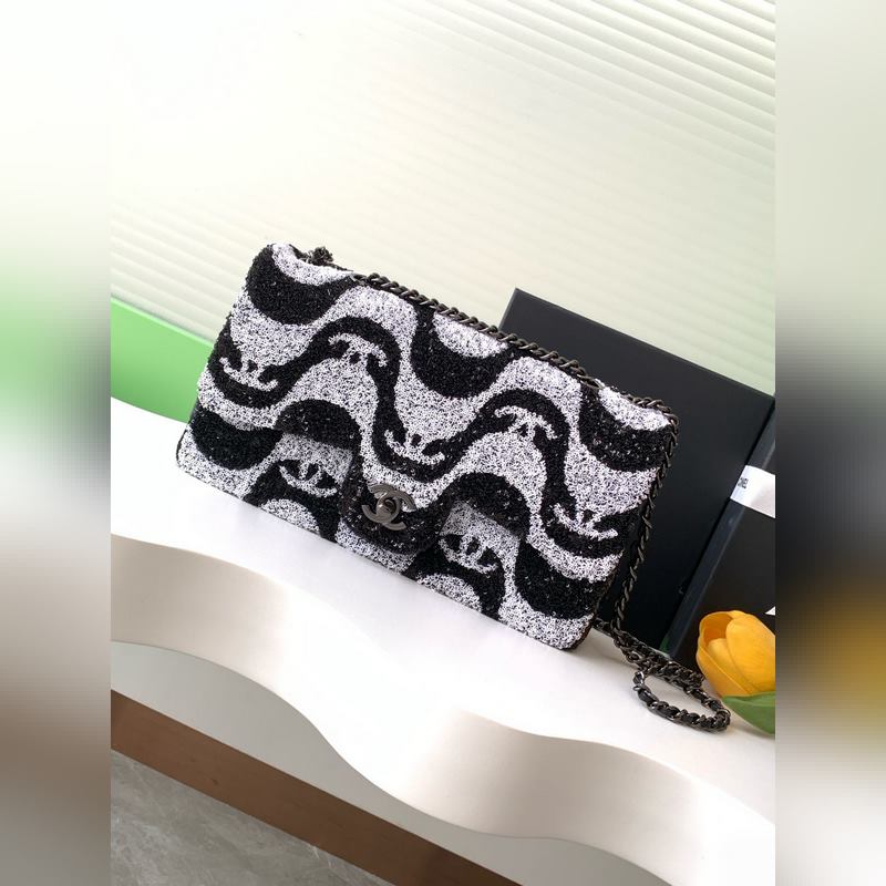 한정판 스팽글 블랙 앤 화이트 웨이브 CF 저는 매년 스팽글 모델을 수집하는데 올해는 정말 예쁘네요! 흑백 오버레이는 물결 모양이고 클래식 로고는 마치 다음 클래식 모델이 될 것 같은 느낌을 줍니다! 하지만 스팽글 모델은 제작하기가 정말 어렵고 개발 난이도는 100+로 정말 힘들어요. 어쩔 수 없이 여러분을 위해 만들어야 합니다! 손에 들거나 어깨에 메는 것도 멋지고 캐주얼한 옷차림을 원한다면 크로스 바디로 착용할 수도 있습니다. 용량이 매우 커서 휴대폰을 넣을 수 없을까 봐 걱정할 필요가 없습니다! 모델 번호 AS2407 사이즈 15-25-7 상자
