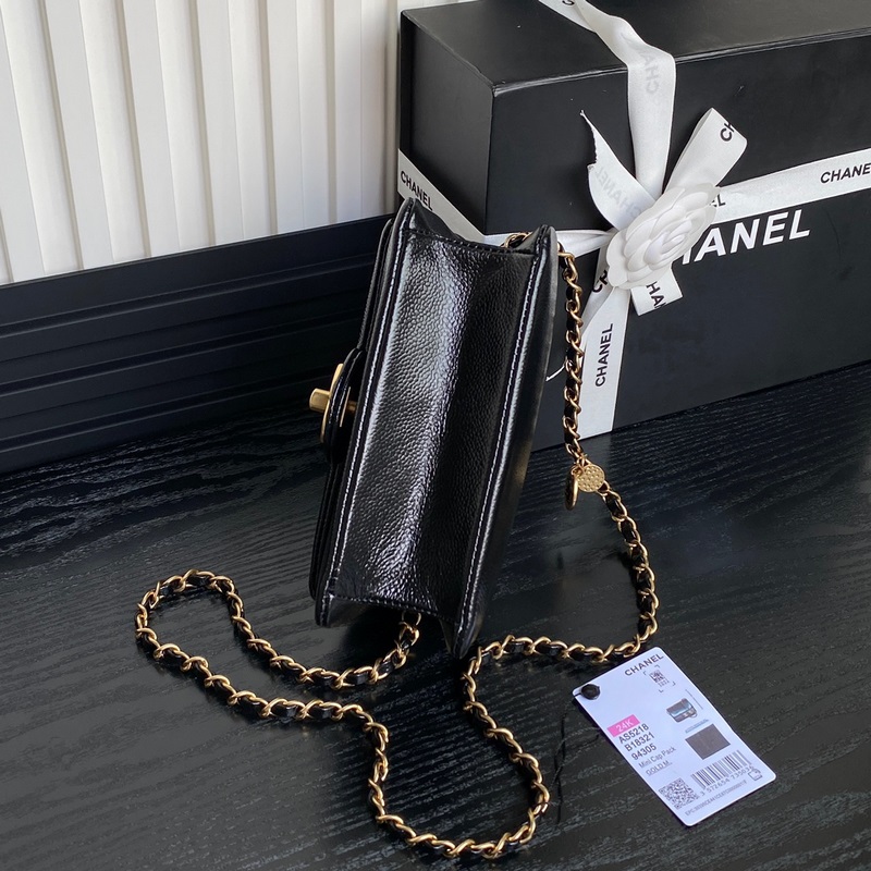 Chane1 24k AS5218 CF 중고 신상 스타일 심플하고 우아한 고급스러운 그레인 엠보싱 처리된 반짝이는 송아지 가죽과 골드 컬러의 금속 레트로 스타일 유행에 뒤처지지 않는 새로운 인기 아이템 작은 Xiang 팬들의 새로운 인기 아이템 착용감이 매우 우수 사이즈: 13×17.5×6