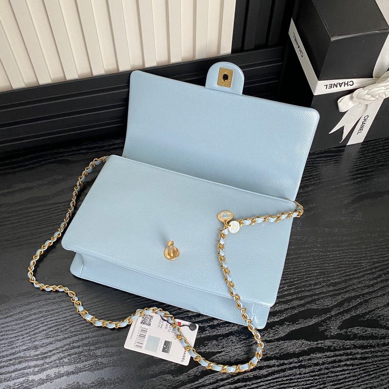 Chane1 24k CF 중고 신품 AS5180 심플하고 우아한 그레인 엠보싱 처리된 반짝이는 송아지 가죽과 금색 금속. 레트로 스타일 유행에 뒤처지지 않습니다. 작은 샤넬 팬들의 새로운 인기 아이템. 상판이 멋져 보입니다. 크기: 17×26×8cm