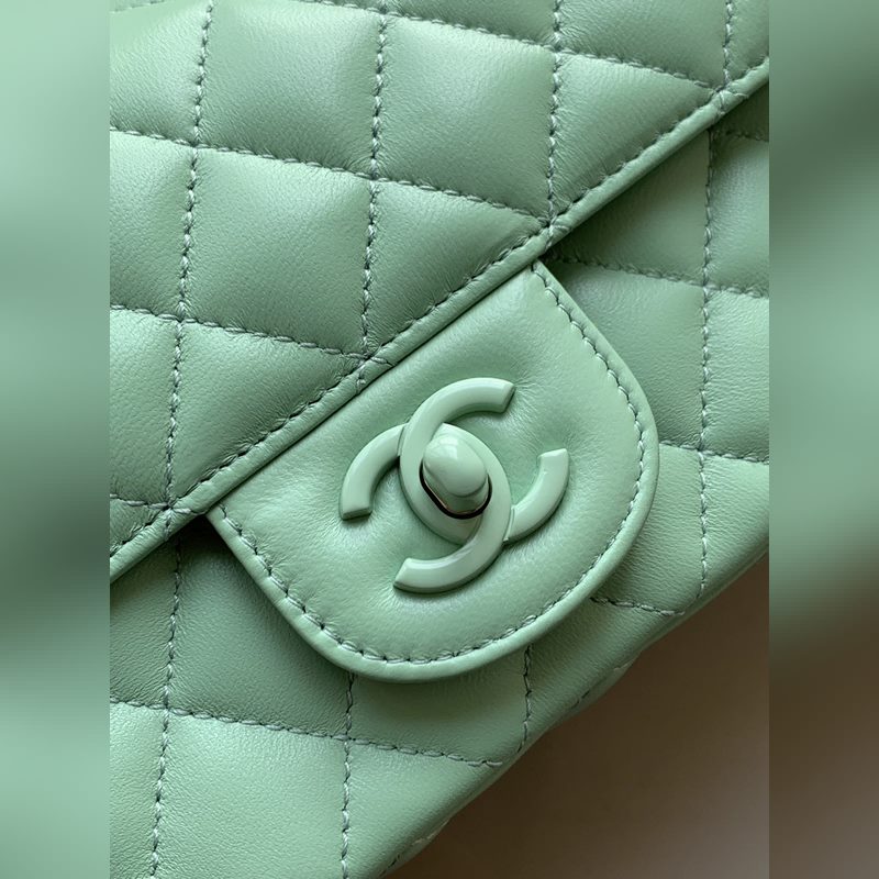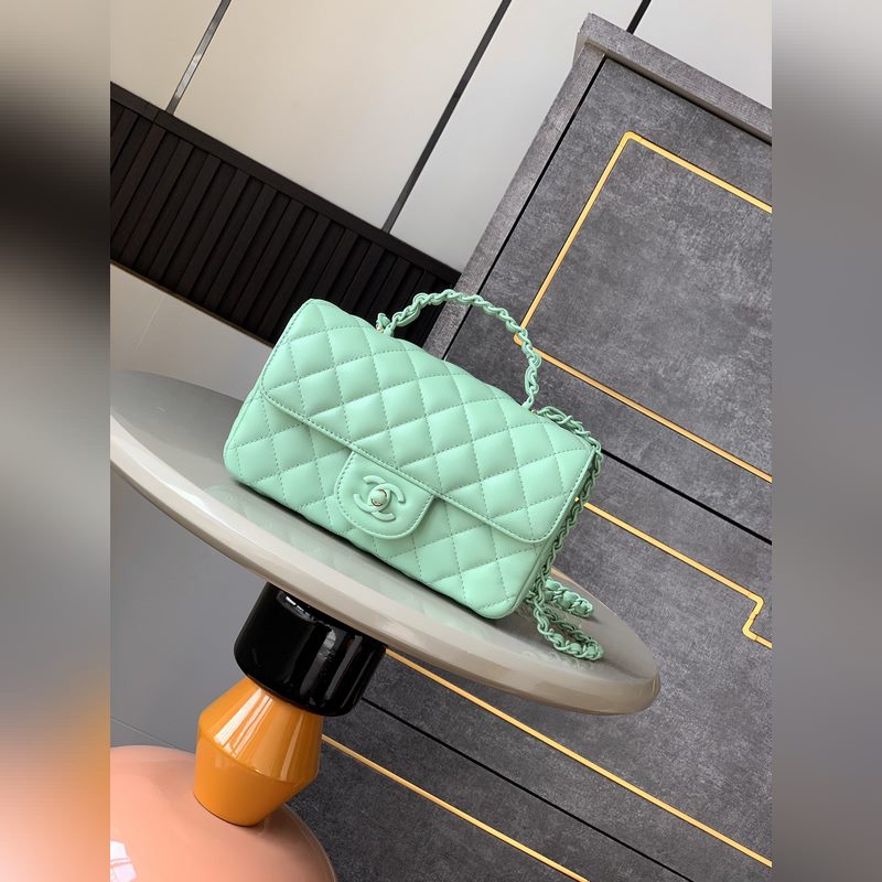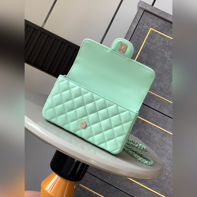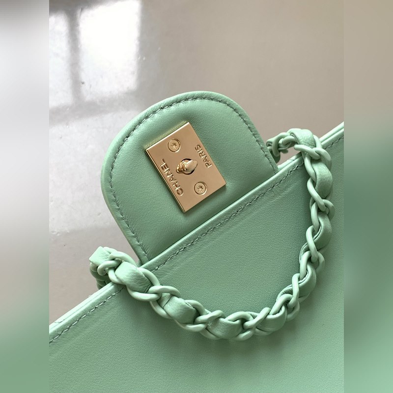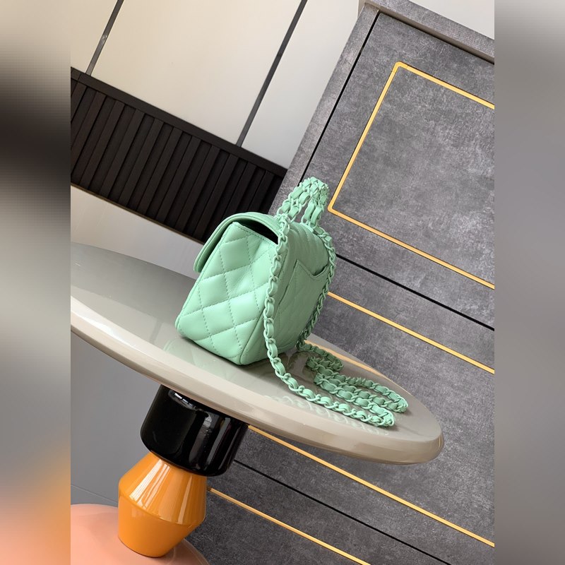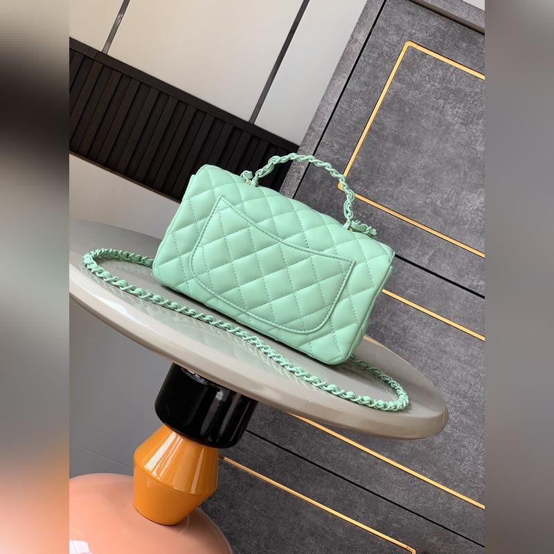 5243 미미 프루트 그린 샤넬 미니 플랩백 핸들 포함! 양가죽과 광