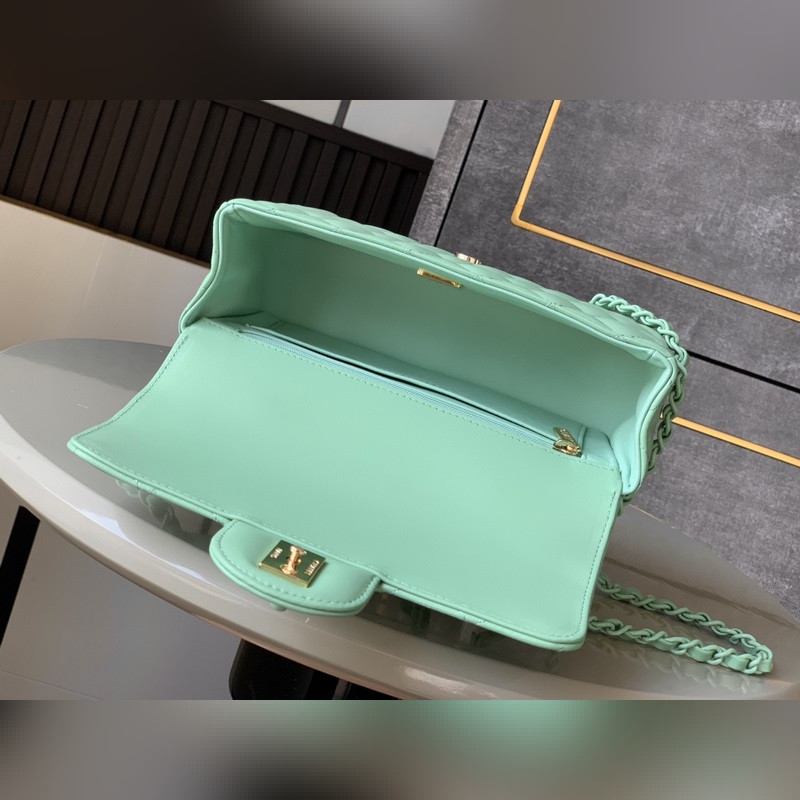 5243 미미 프루트 그린 샤넬 미니 플랩백 핸들 포함! 양가죽과 광택 있는 래커 처리된 금속 25C 리조트 컬렉션 플랩 백 꿈결 같은 수중 세계에서 영감을 받은 14가지 모델이 브랜드의 스타일 상징을 혁신적으로 해석합니다. 25c 순수한 단색의 여성스러운 스타일이 이번 봄에 온라인에 출시되었습니다. 여성스러운 스타일의 단색 가방은 연한 녹색 연한 분홍색 크림색 흰색 등 4가지 색상으로 제공됩니다. 양가죽과 광택 있는 래커 처리된 금속 미니 사이즈: 12.5x 20x 6(cm)