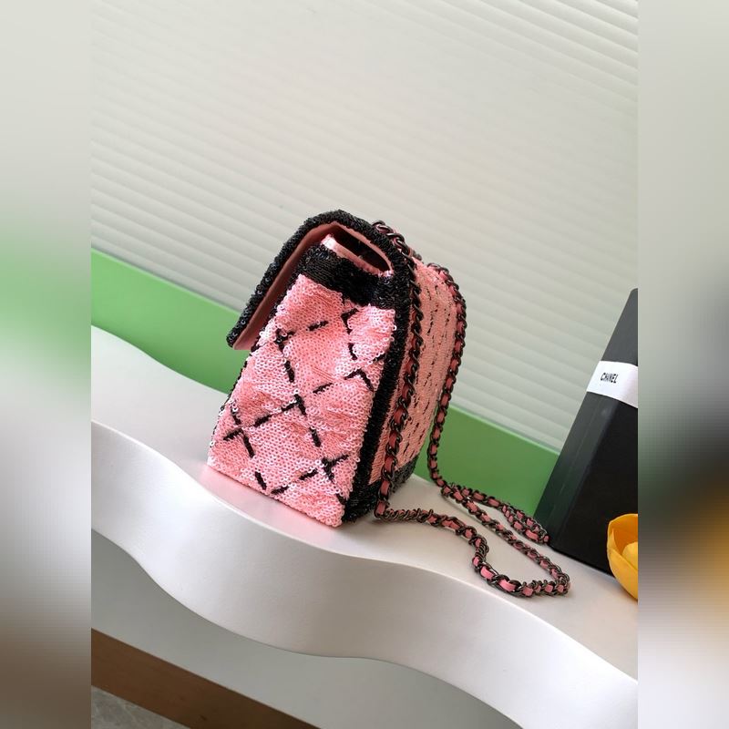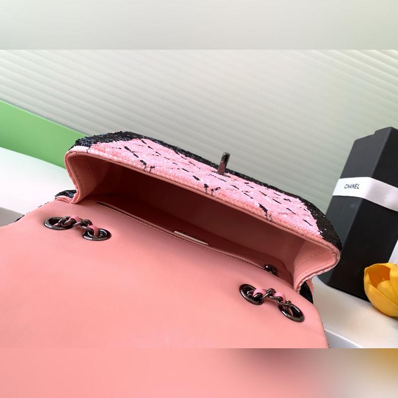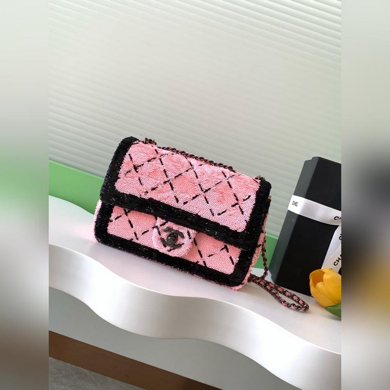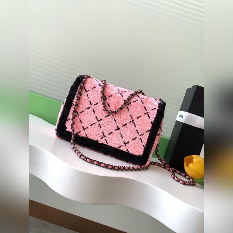 샤넬 24P 비즈 백 심장이 멎을 것만 같아요! 분홍색 격자무늬가 정말 봄의 활력을 느끼게 해 줍니다! 너무 좋아서 정말 멋져요! 스팽글 가방은 다양한 빛에 따라 반짝반짝 빛나는 작은 스팽글로 장식되어 있어 요정 가방처럼 보입니다! 너무 아름다워서 눈을 뗄 수가 없어요! 모델 번호 AS4561 크기 20cm 포장