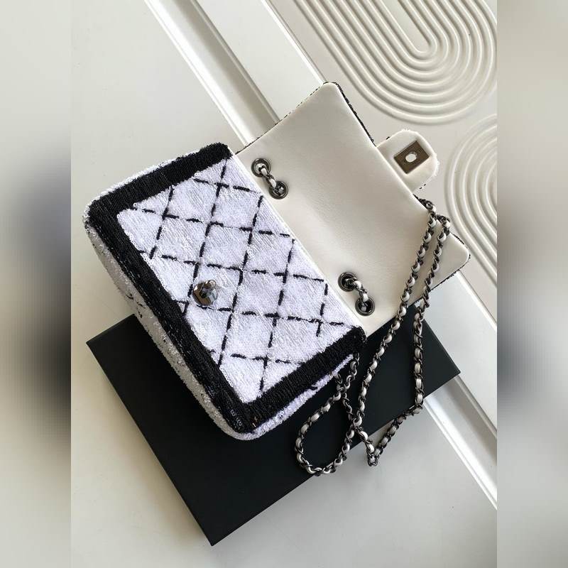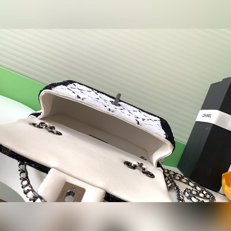 샤넬 24P 비즈 백 심장이 멎을 것만 같아요! 흰색과 검은색의 체크무늬