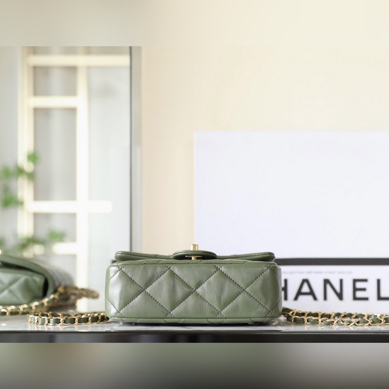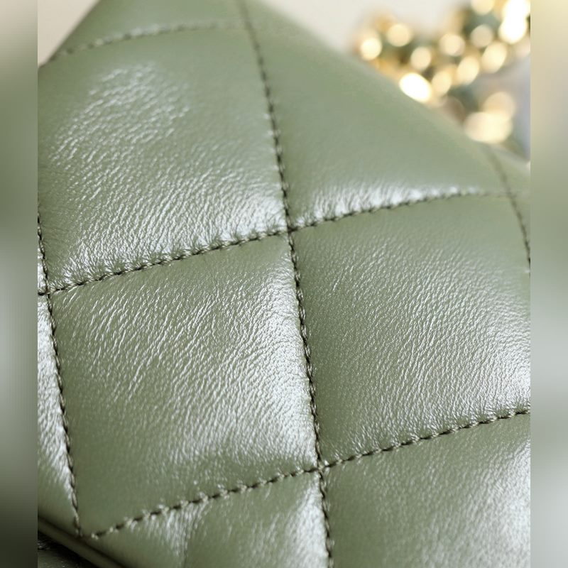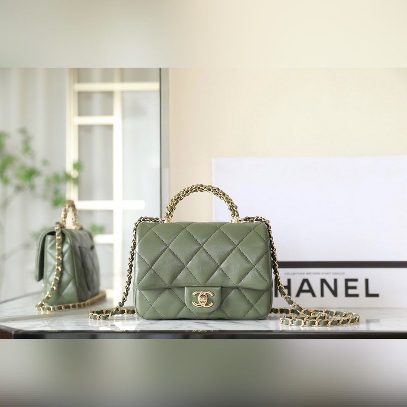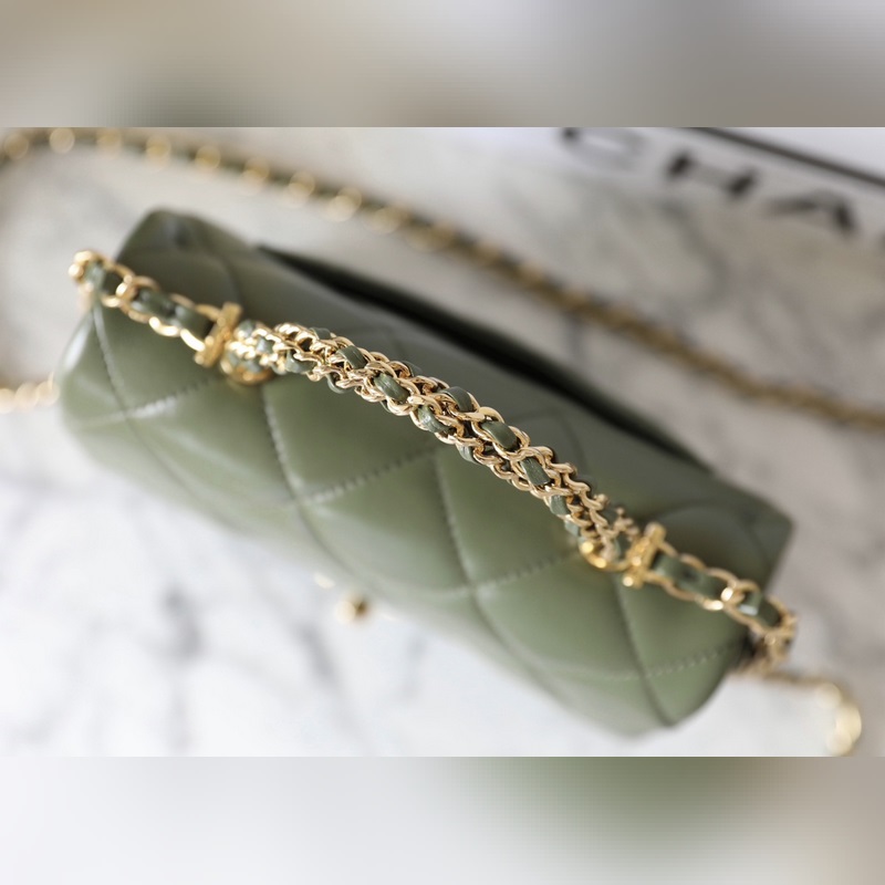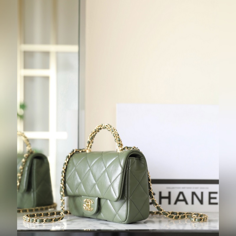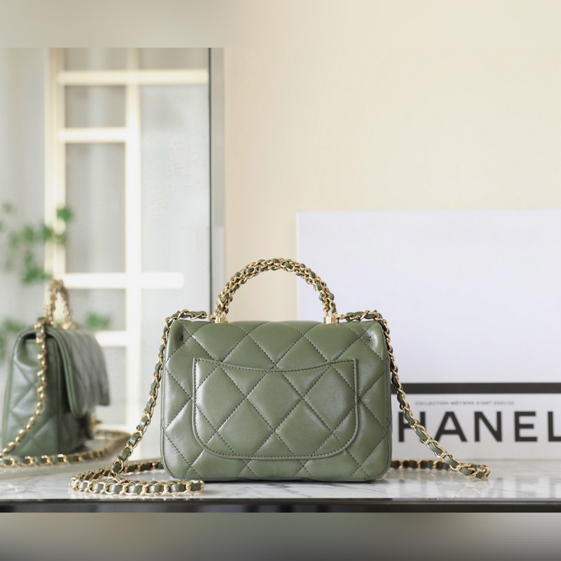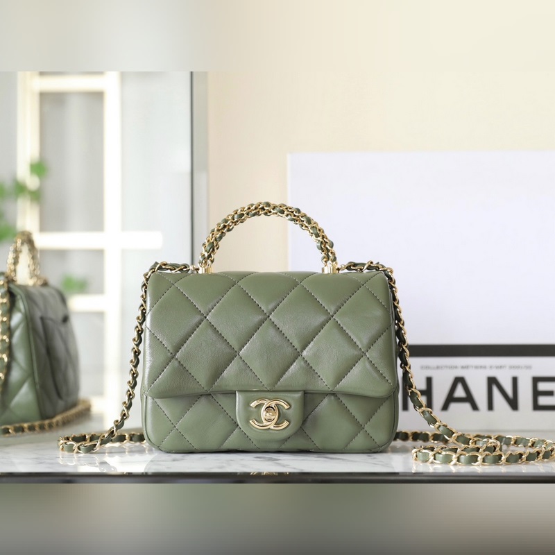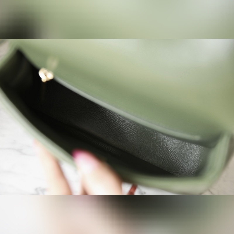 신상 #가을/겨울 컬렉션 나사 체인 손잡이 작은 쿠바 그린 소매가: 구매 개발 ~ 독특한 체인형 손잡이 디자인 우아하고 아름답을 뿐만 아니라 편안한 그립감을 제공합니다. 이 디자인은 작은 향의 고전적인 요소들을 유지할 뿐만 아니라 가방에 새로운 예술적 감각과 세련된 느낌을 더해줍니다. 하드웨어: 두꺼운 도금 반짝이는 금 버클 가죽: 광택이 있는 양가죽 크기: 19-14-8