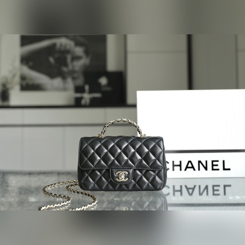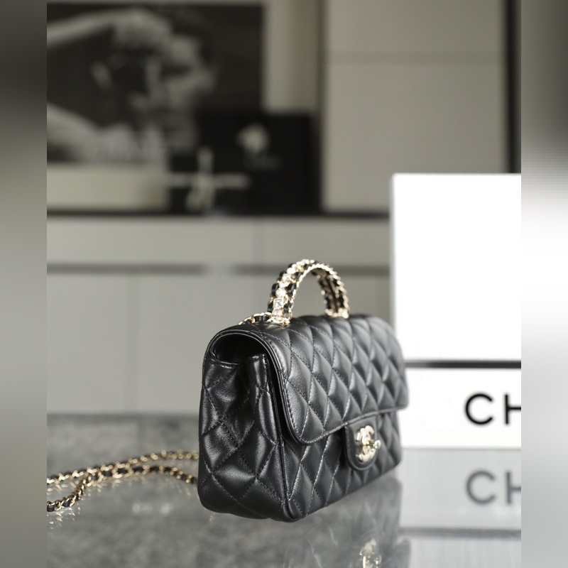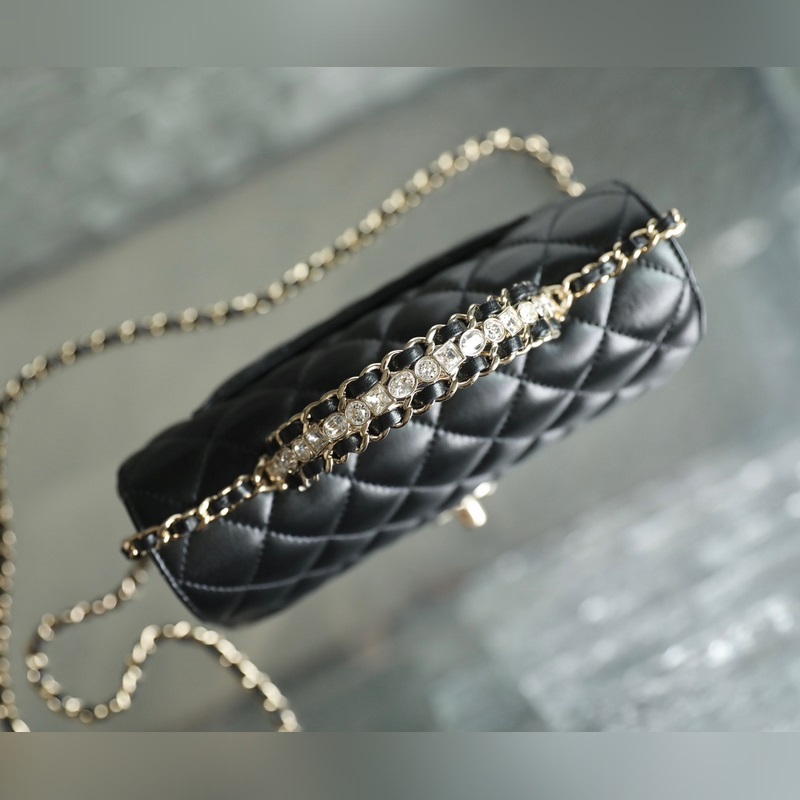새로운 도착: 수공예 워크숍 플랩이 달린 라인스톤 핸드백 검은색 소형