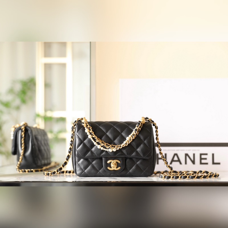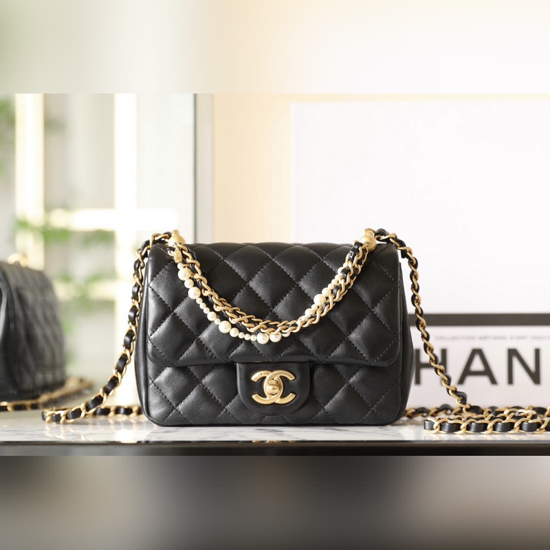 신상품 봄/여름 진주 체인 입 커버 백 블랙 정가 구매 개발 팡팻보
