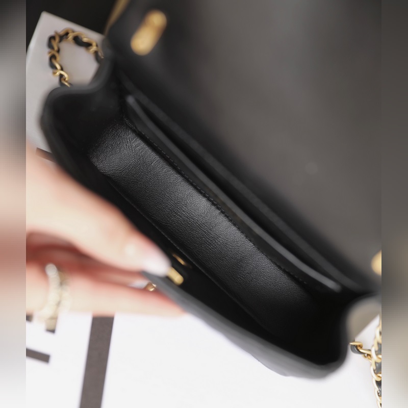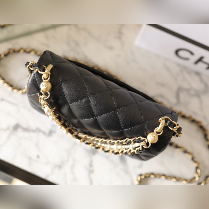 신상품 봄/여름 진주 체인 입 커버 백 블랙 정가 구매 개발 팡팻보이와 진주 체인의 융합은 손에 들거나 등에 메고 다니는 것이 모두 멋지게 보입니다. 복고풍 트렌드와 현대 패션의 충돌 하드웨어: 빈티지 골드 도금 가죽: 오리지널 양가죽 크기: . *