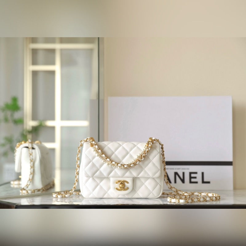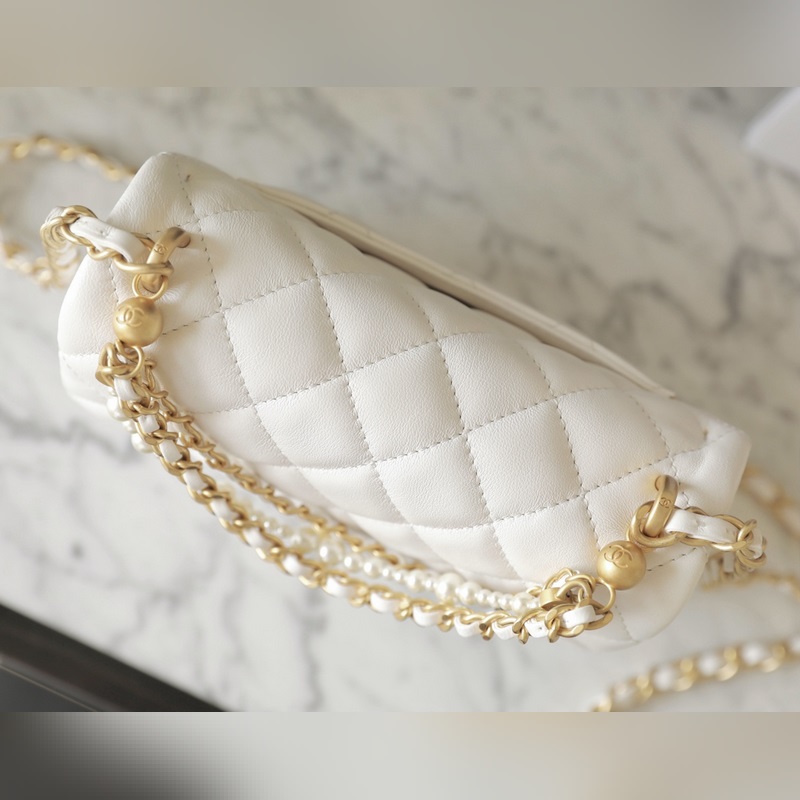 신상품 봄/여름 진주 체인 입 커버 백 화이트 정가 구매 개발 Fang Fatboy와 진주 체인의 융합은 손에 들거나 등에 메고 다니는 것이 모두 잘 어울립니다. 복고풍 트렌드와 현대 패션의 충돌 하드웨어: 골동품 금도금 가죽: 오리지널 양가죽 크기: . *