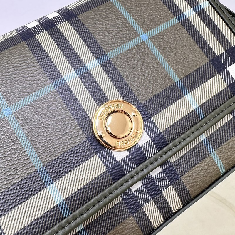 최고 브랜드 버버리의 최신 컴팩트 백은 부드러운 송아지 가죽으로 만들어졌으며 버버리만의 체크 무늬로 장식되어 있습니다. 탈착식 어깨끈이 있어 크로스바디 백과 클러치 백으로 조절하여 사용할 수 있습니다. 탈부착이 가능하고 길이 조절이 가능한 크로스 바디 스트랩 상단 덮개(마그네틱 잠금장치) 크기 20 x 4.7 x 13.5cm. 모델 421150