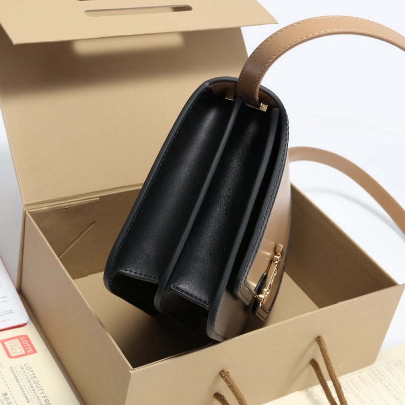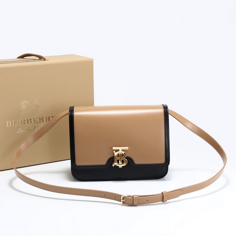 버버리 TB 미디엄 전용 로고 투톤 가죽 잠금 가방 직립형 가죽 숄더백