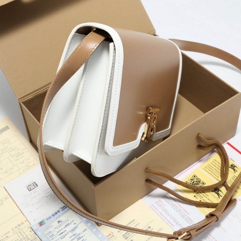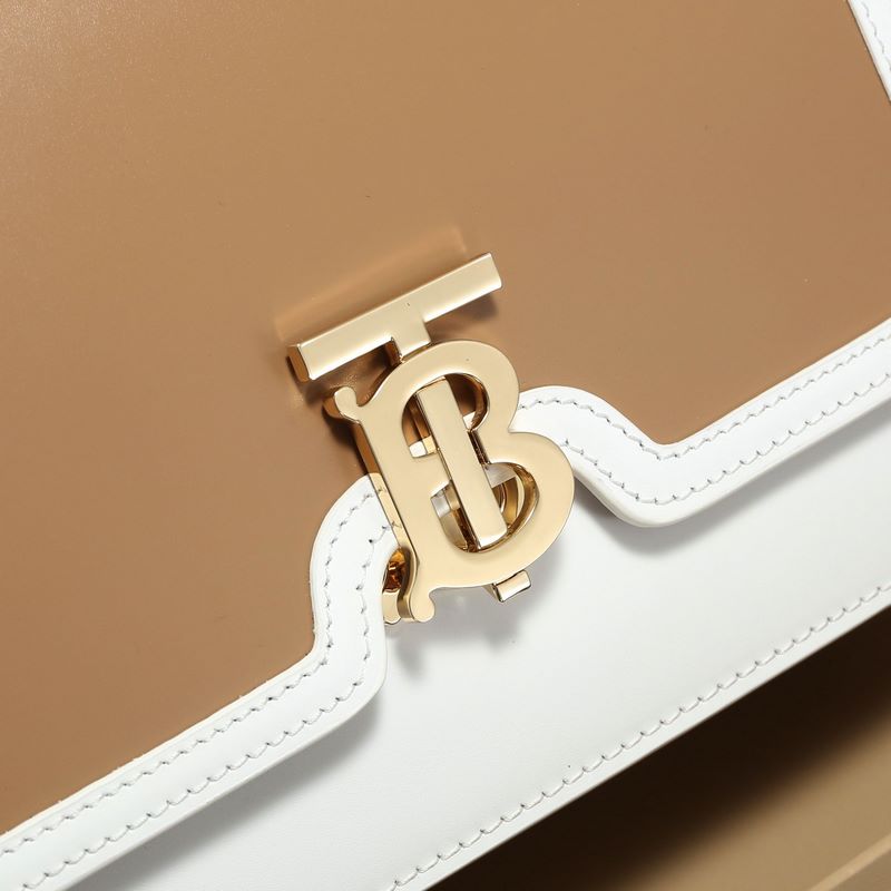 버버리 TB 미디엄 전용 로고 투톤 가죽 잠금 가방 직립형 가죽 숄더백