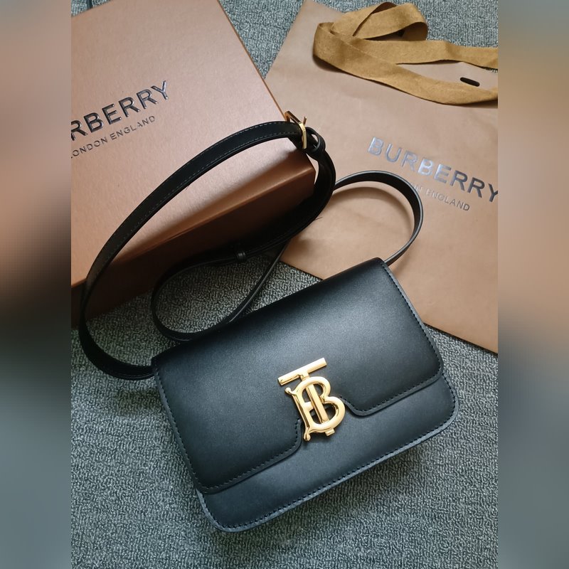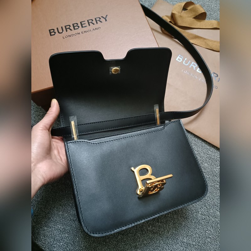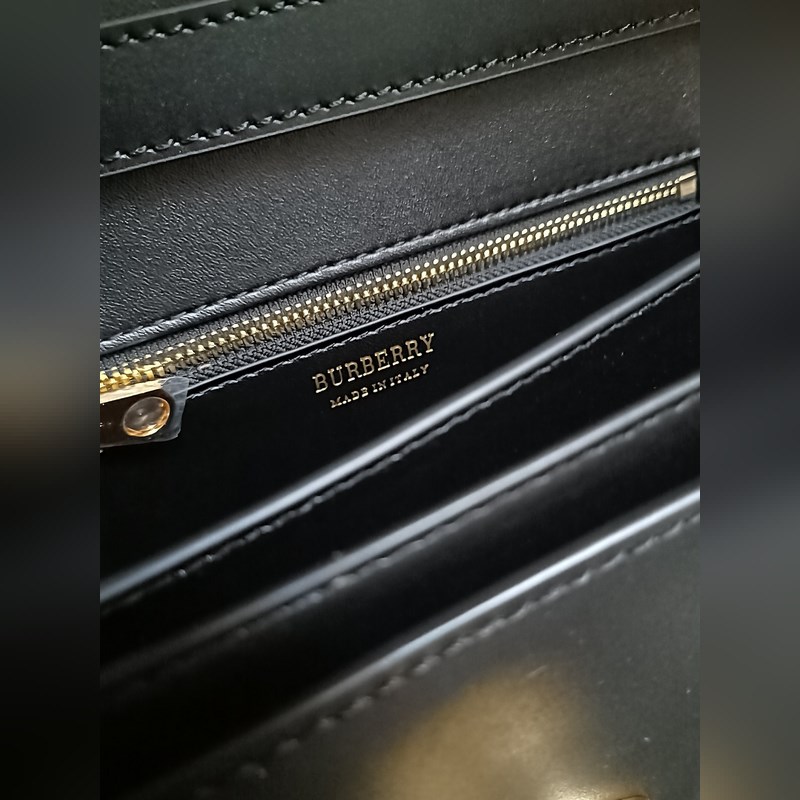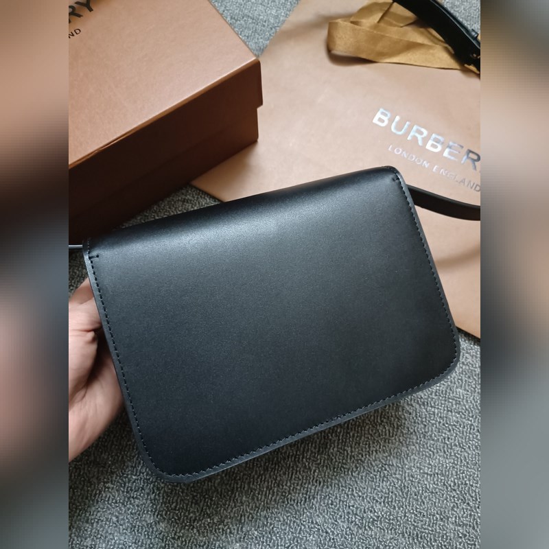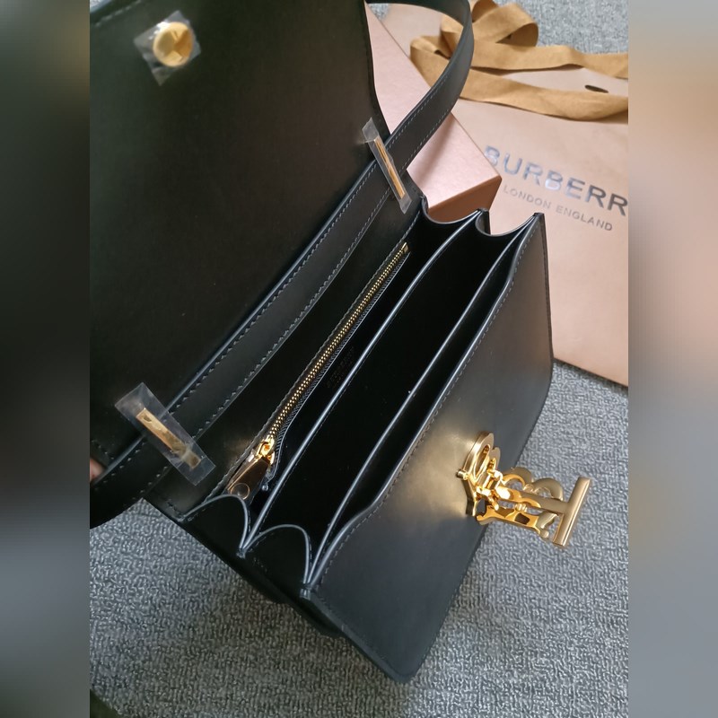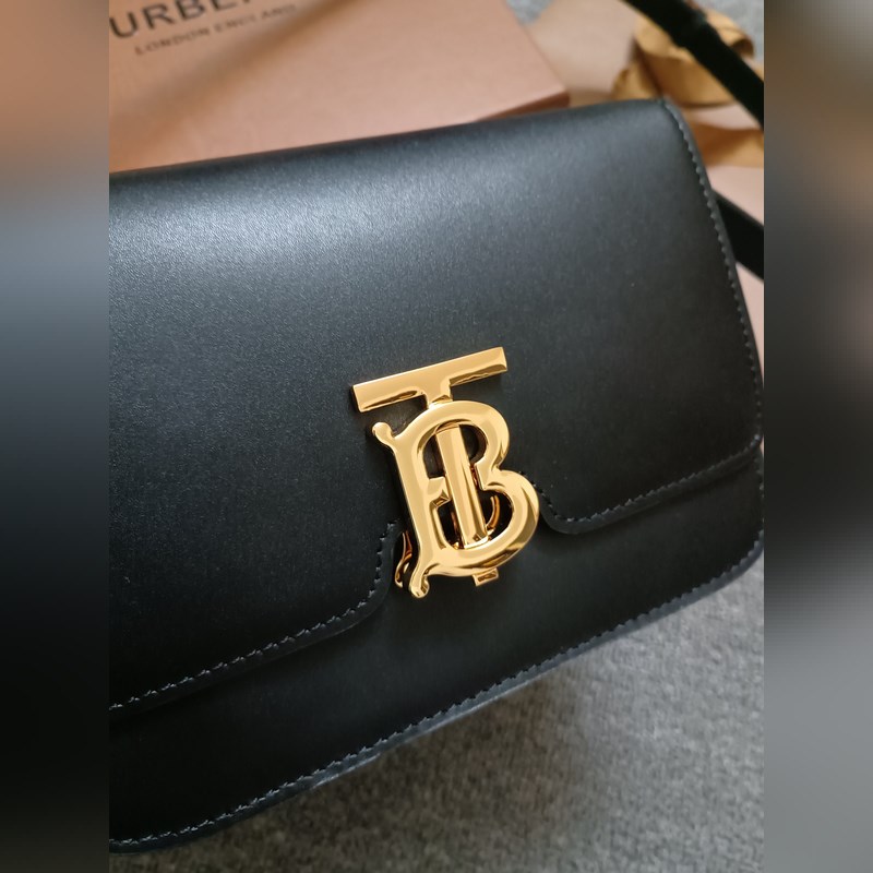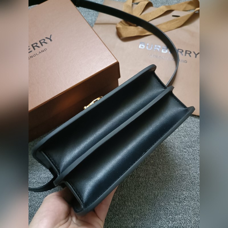 버버리의 TB 스몰 익스클루시브 로고 가죽 락 백은 깔끔한 모양과 부드러