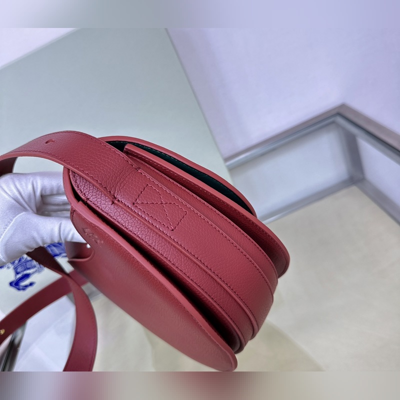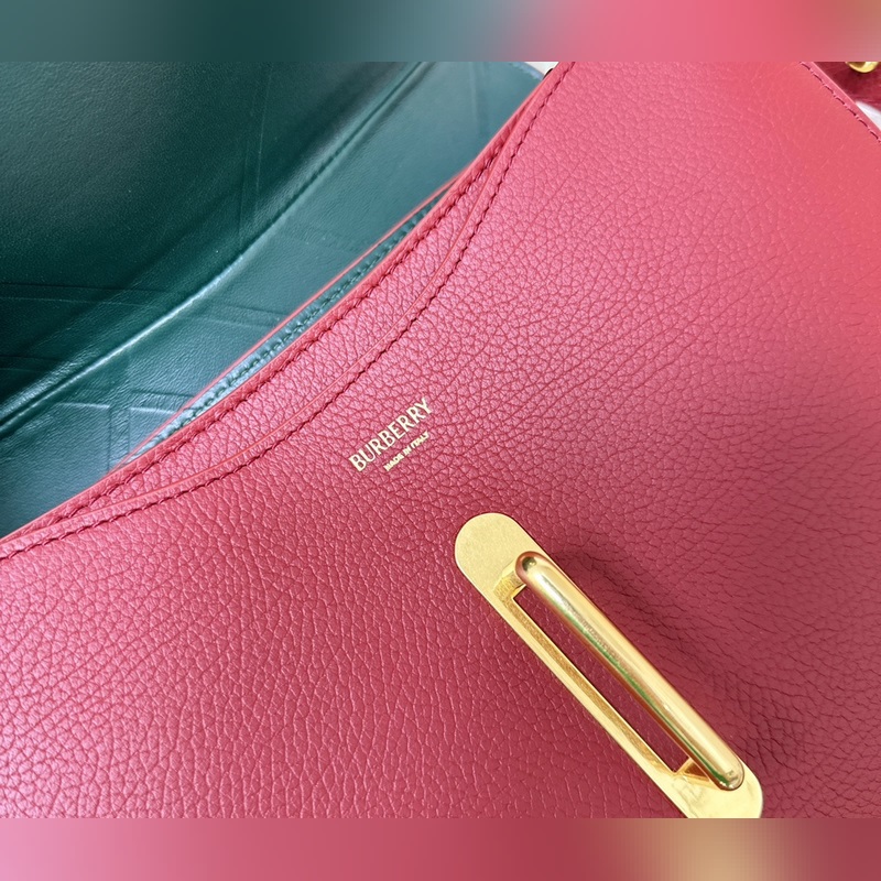 상단: 버버리의 최신 스탠드업 백은 그레인 송아지 가죽으로 만들어졌으며 이탈리아 공방에서 제작되었습니다. 내부는 엠보싱 체크 무늬 가죽 패브릭으로 안감이 되어 있으며 곡선형 실루엣은 어린 시절에 타던 흔들목마에서 영감을 받았습니다. 플랩 잠금 장치는 B자형으로 되어 있습니다. 어깨에 메는 가방과 크로스바디 가방 스타일로 전환할 수 있도록 조절할 수 있는 가죽 어깨 스트랩이 함께 제공됩니다. 조절 가능한 가죽 어깨 스트랩 B자형 잠금장치가 달린 상단 덮개 내부 포켓; 자석으로 여닫는 외부 포켓 손으로 그린 가장자리 브러시드 메탈 피팅 뒷면에 양각으로 새겨진 승마 선수 로고(EKD) 체크무늬 엠보싱 안감 크기 26 × 9.5 × 20.5cm. 모델 3301
