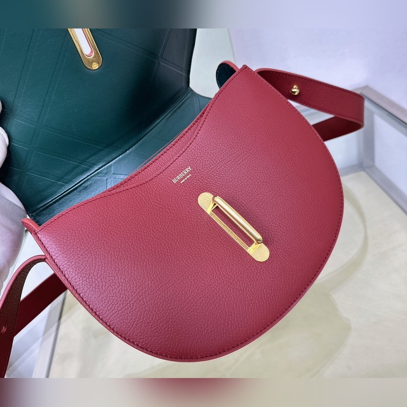상단: 버버리의 최신 스탠드업 백은 그레인 송아지 가죽으로 만들어졌으며