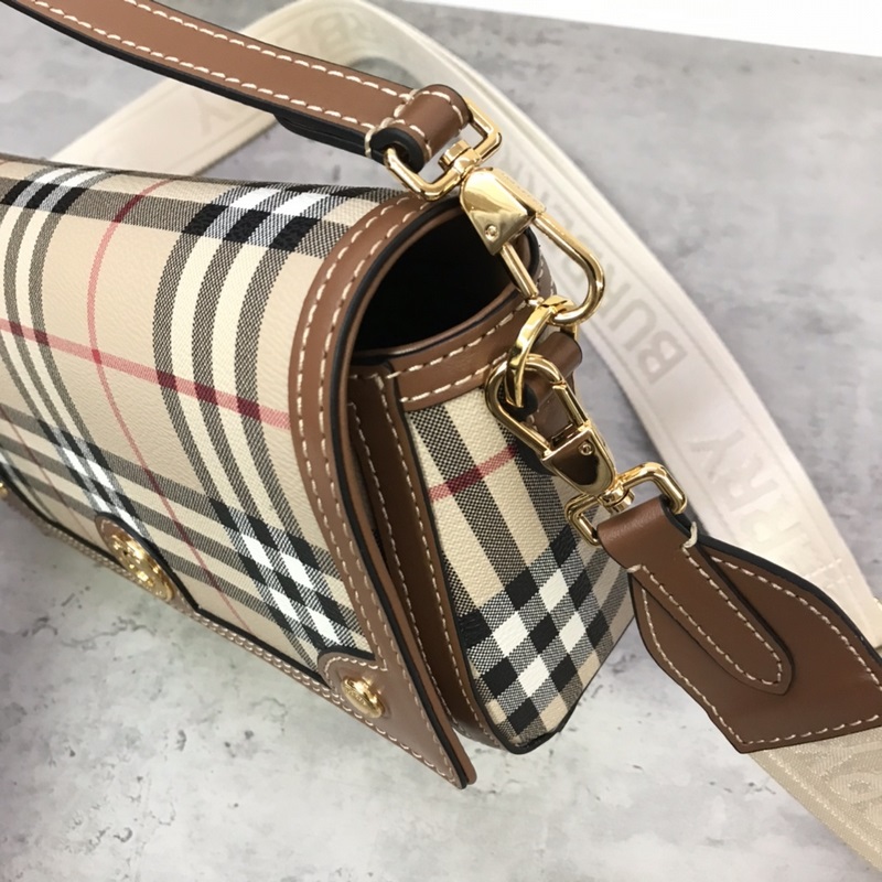 버버리 여성용 크로스바디 백 브랜드의 아카이브에서 영감을 받아 캔버스로 제작. 버버리 체크와 로고가 새겨진 스냅 버튼으로 장식. 24 x 8 x 14cm 상단 가죽 손잡이. 탈부착이 가능한 조절식 크로스바디 스트랩. 내부 슬립 포켓 1개. 상단 플랩에 마그네틱 스냅 잠금장치. 손으로 그린 듯한 페인트 테두리. 반짝이는 금속 부속품