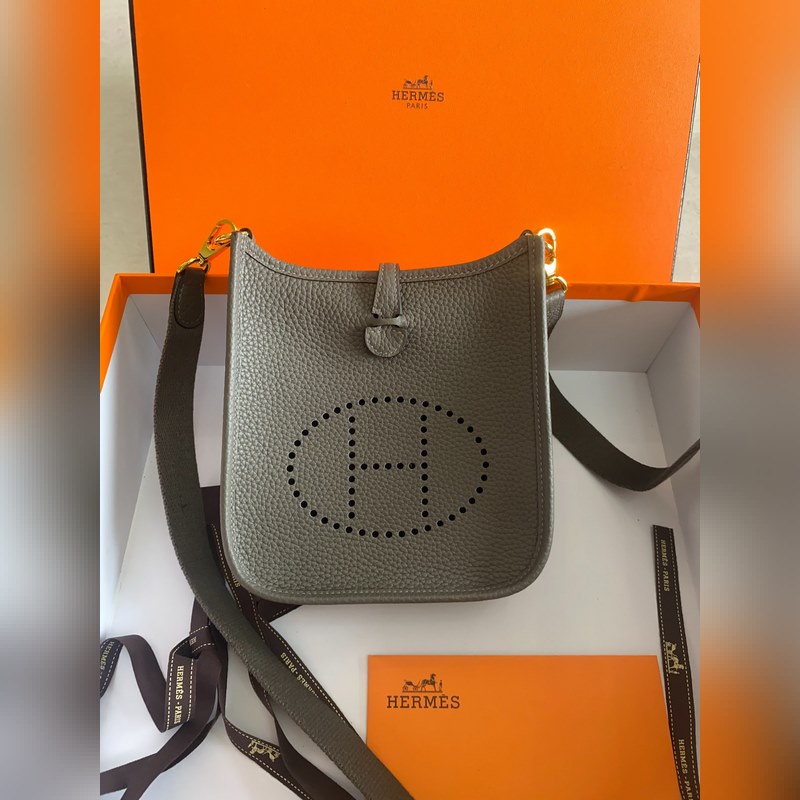 재고 있음 배송 준비 완료. 에블린 펄 그레이 골드 버클 반 수제 밀랍 실 스티치 작은 17cm 컬러 숄더 스트랩