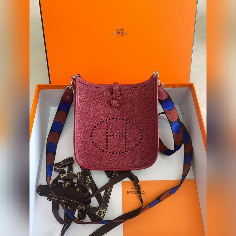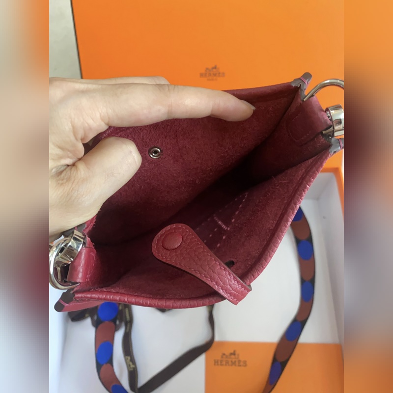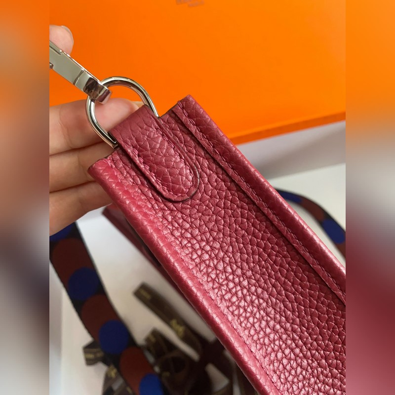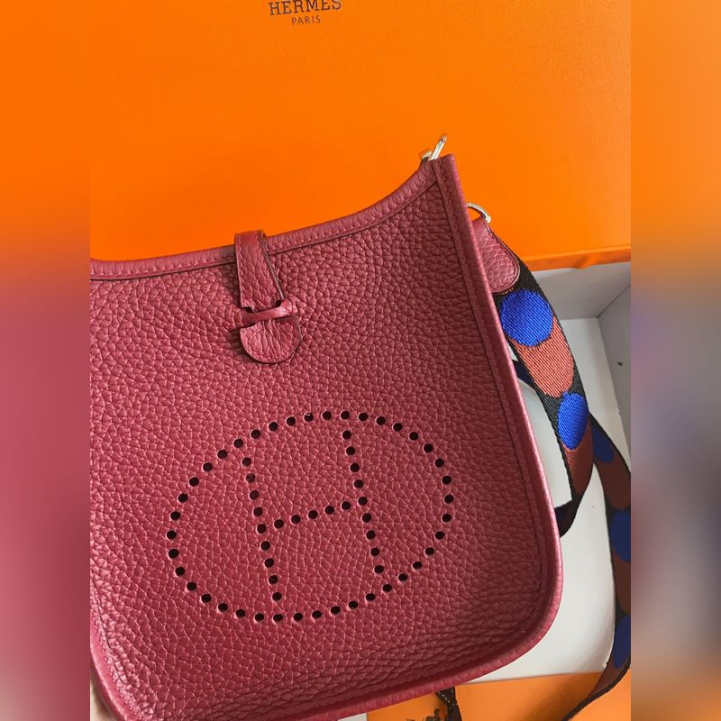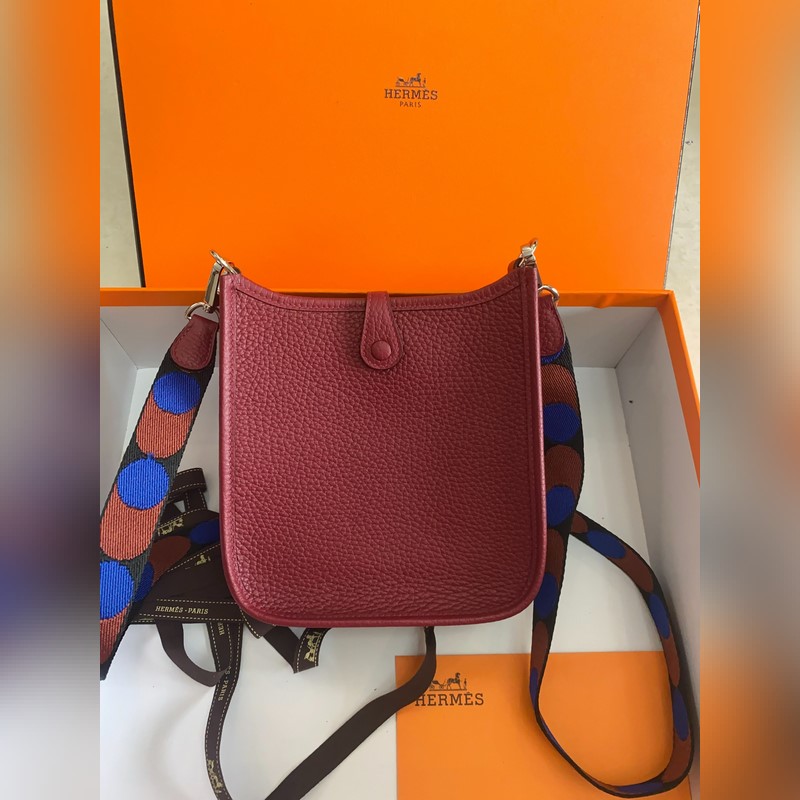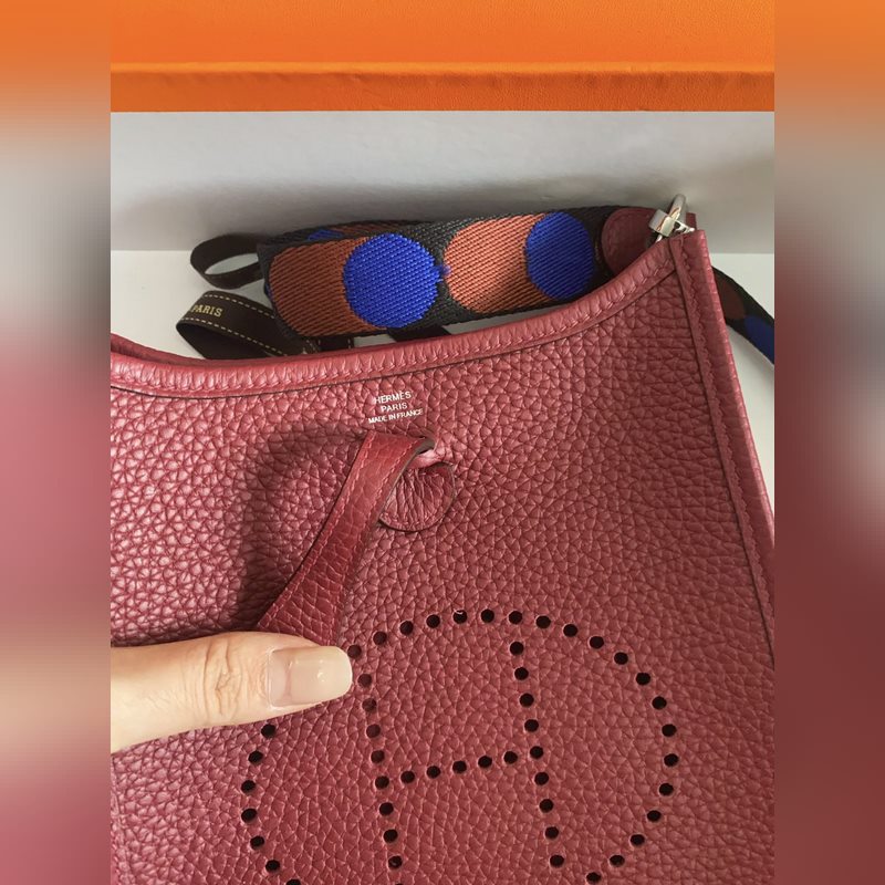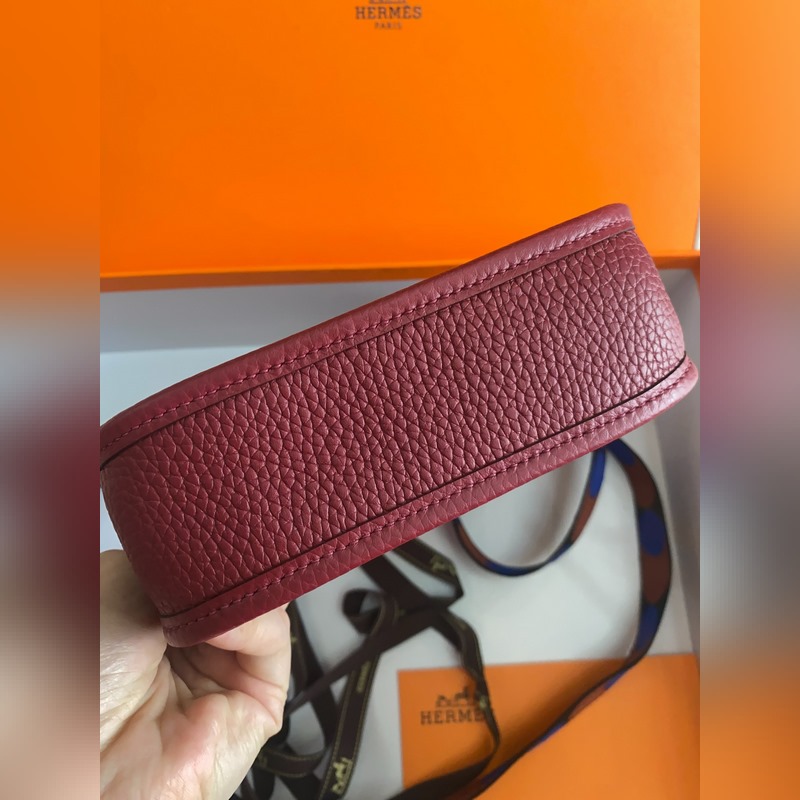 재고 있음 배송 준비 완료. 은색 버클이 달린 에블린 버건디. 밀랍 실과 작은 17cm 컬러 어깨 스트랩으로 반 수제 제작.